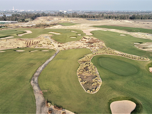 該球場由世界上最好的高爾夫球場設計師之壹吉爾-漢斯設計,是壹個傳奇的林克斯球場,類似于“麗都高爾夫球場”,同時也是向美國高爾夫球場設計大師查爾斯-布萊爾-麥克唐納致敬。