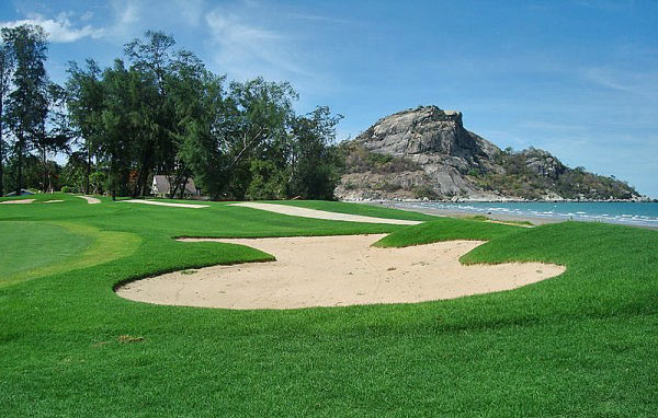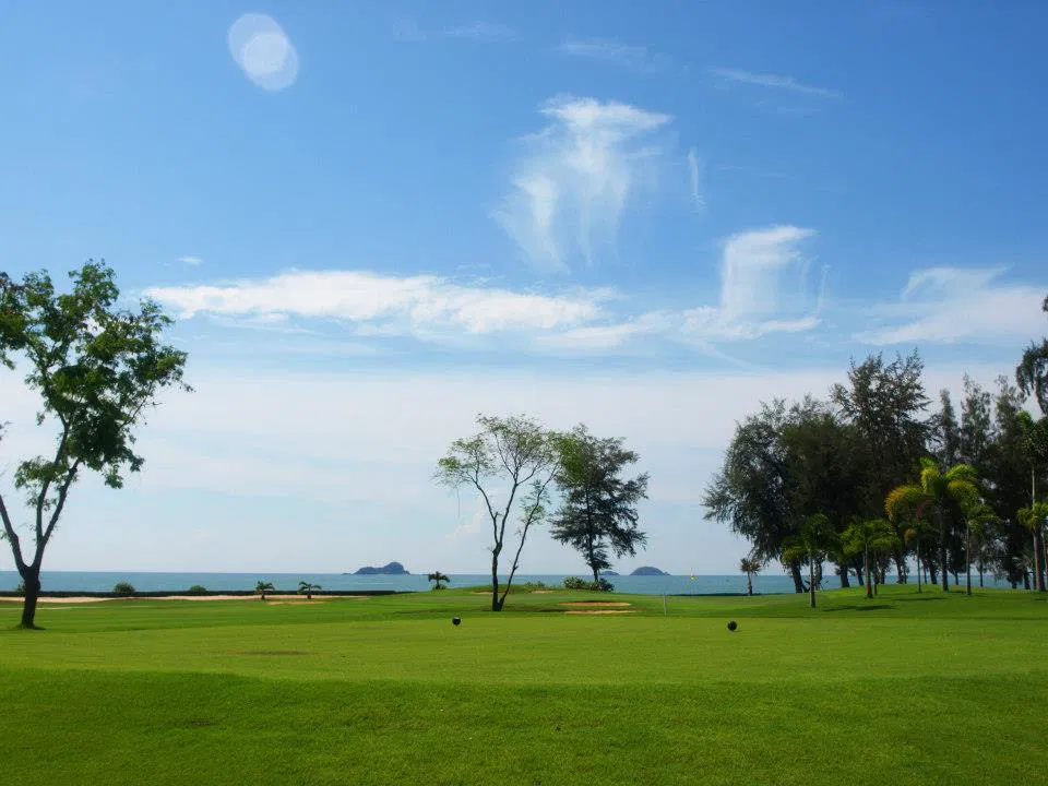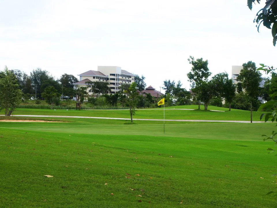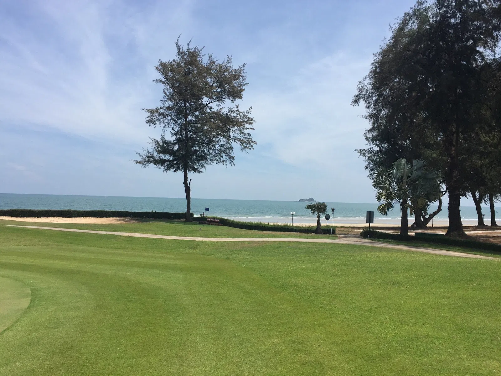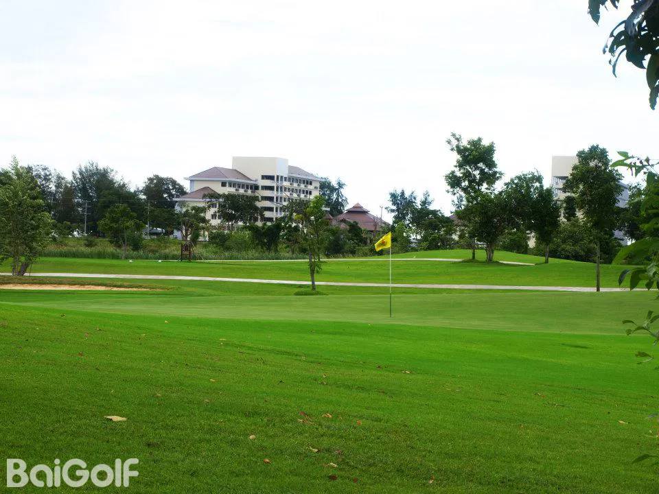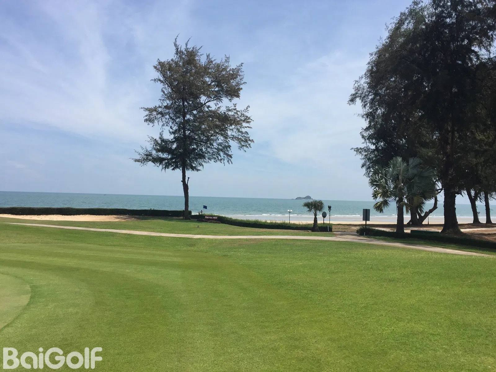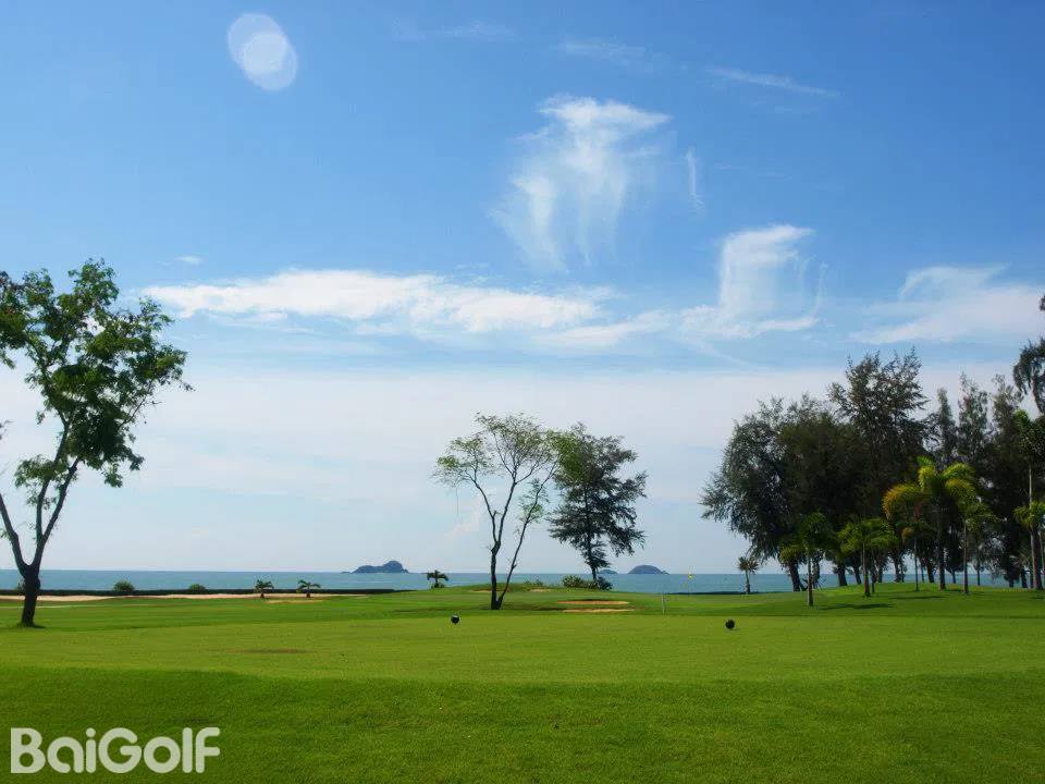 En modern klubbhus med utsikt över Thailandsviken erbjuder utmärkt thailändsk mat. Den här banan i kuststaden ger mycket golf för pengarna.