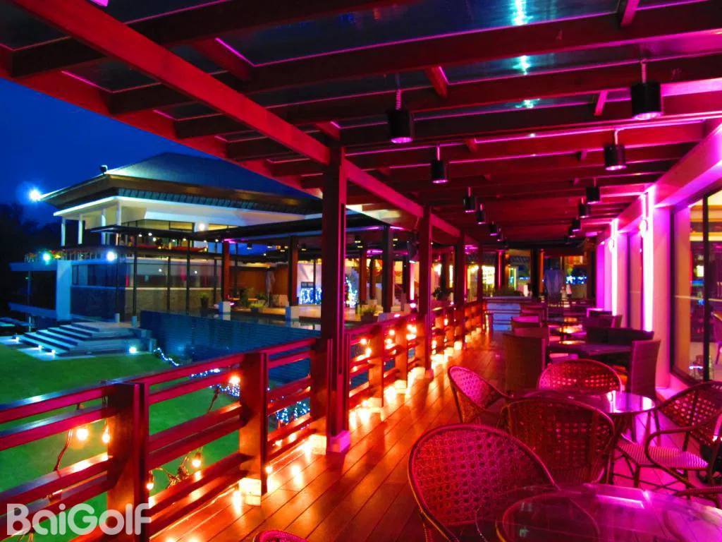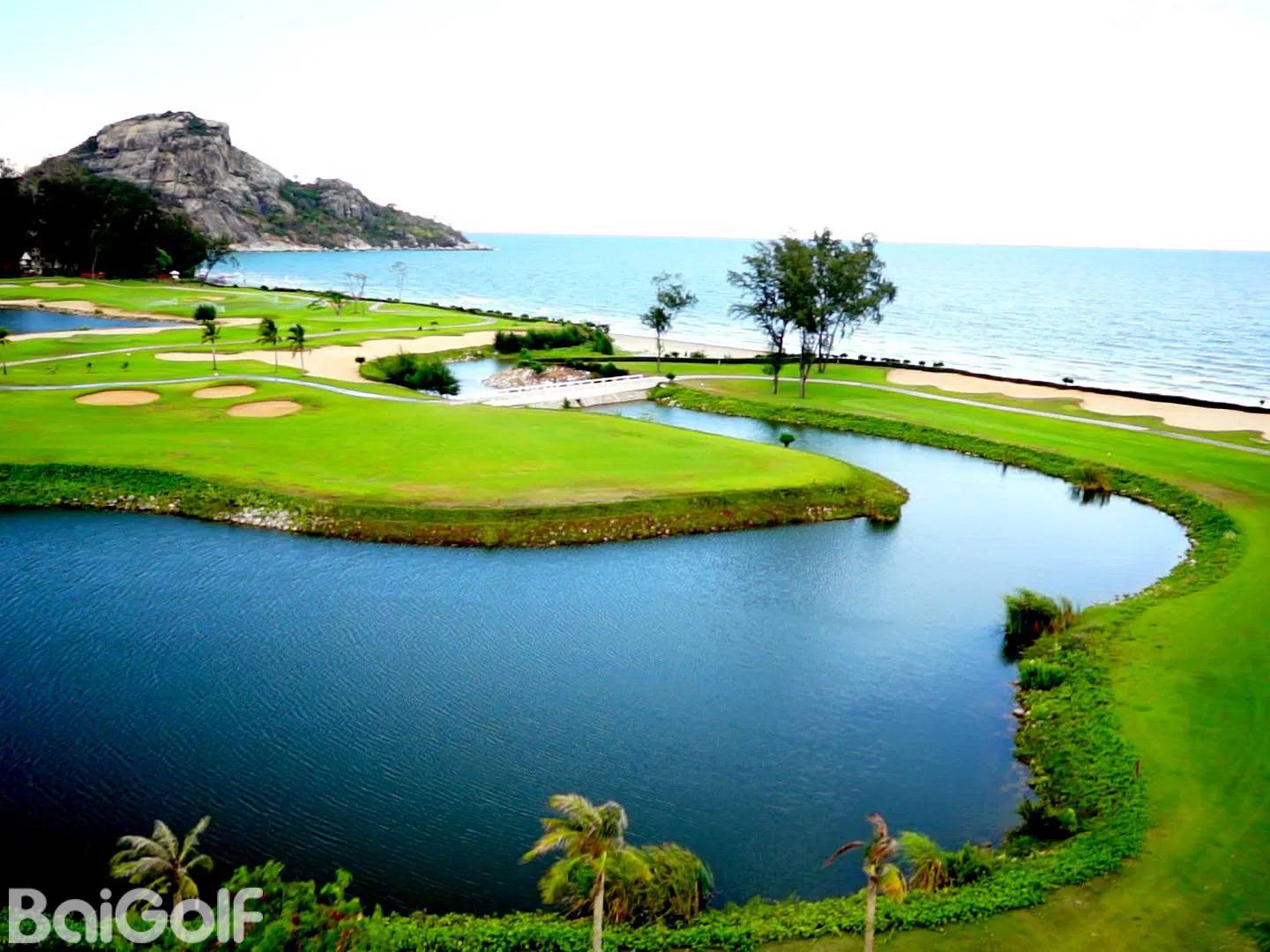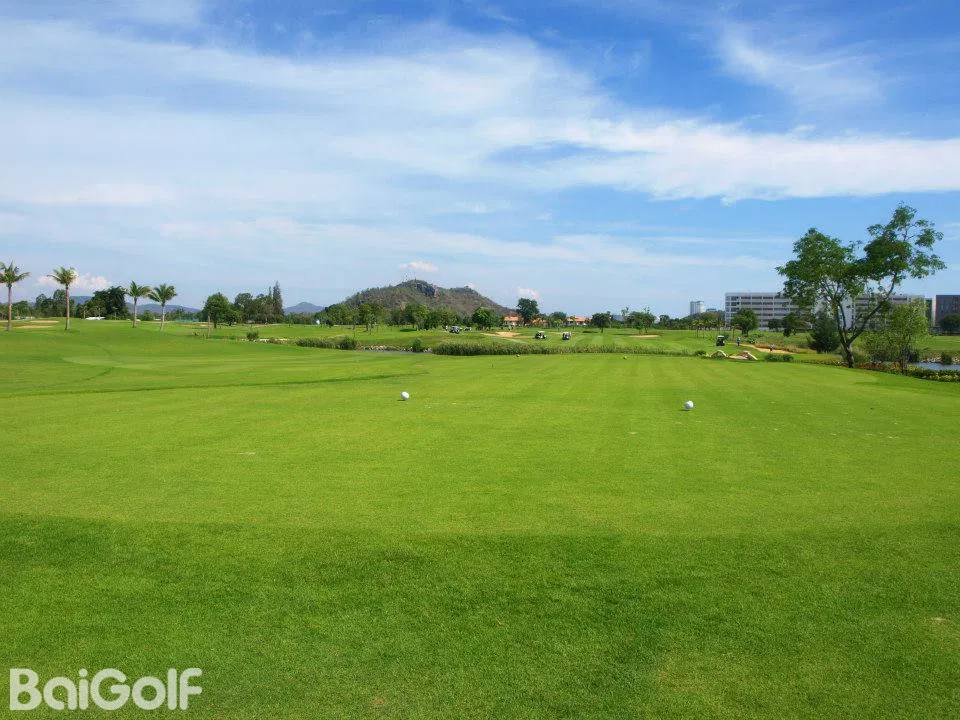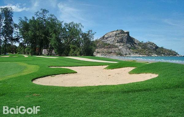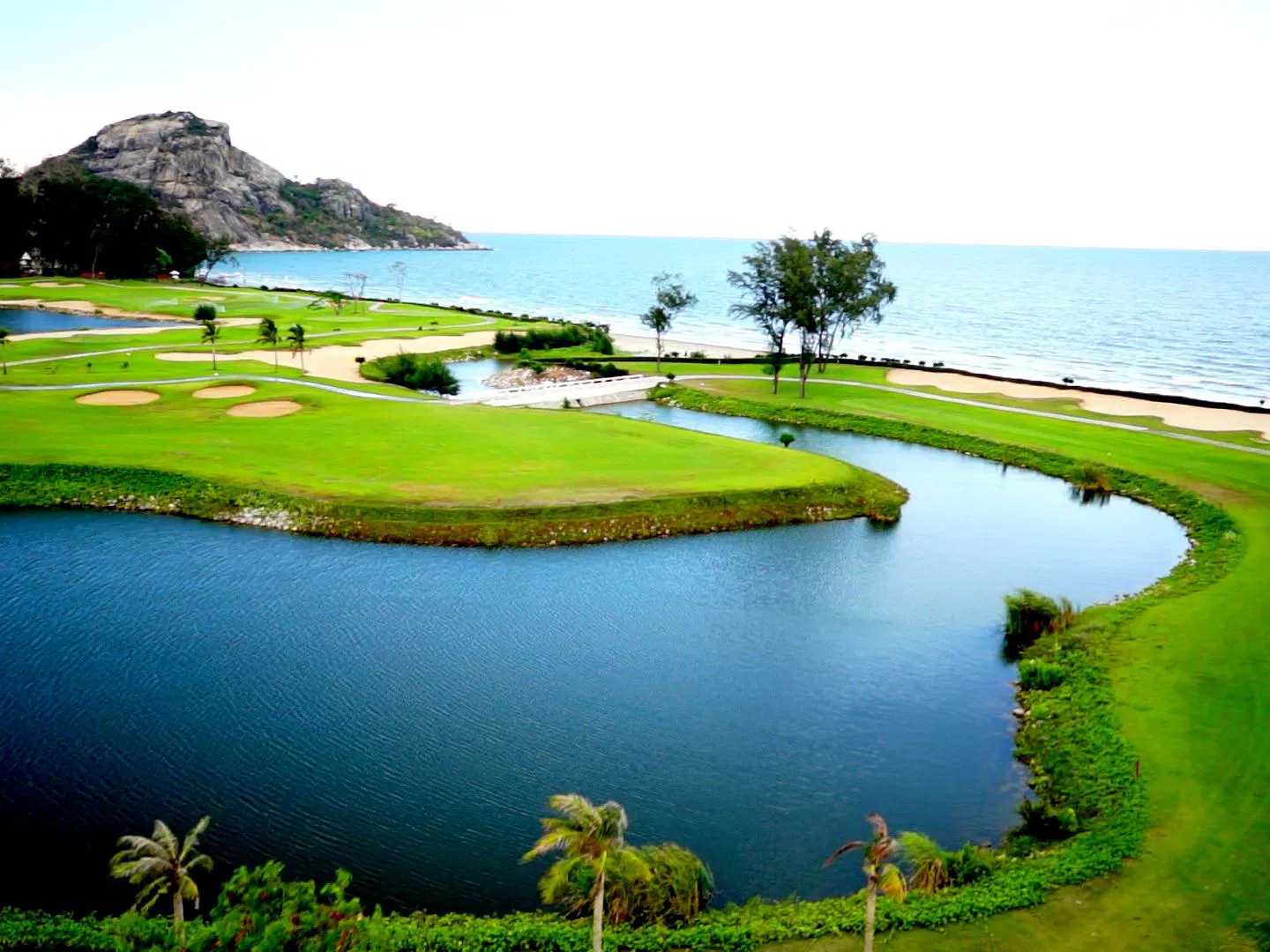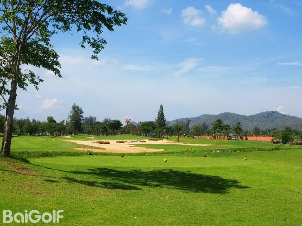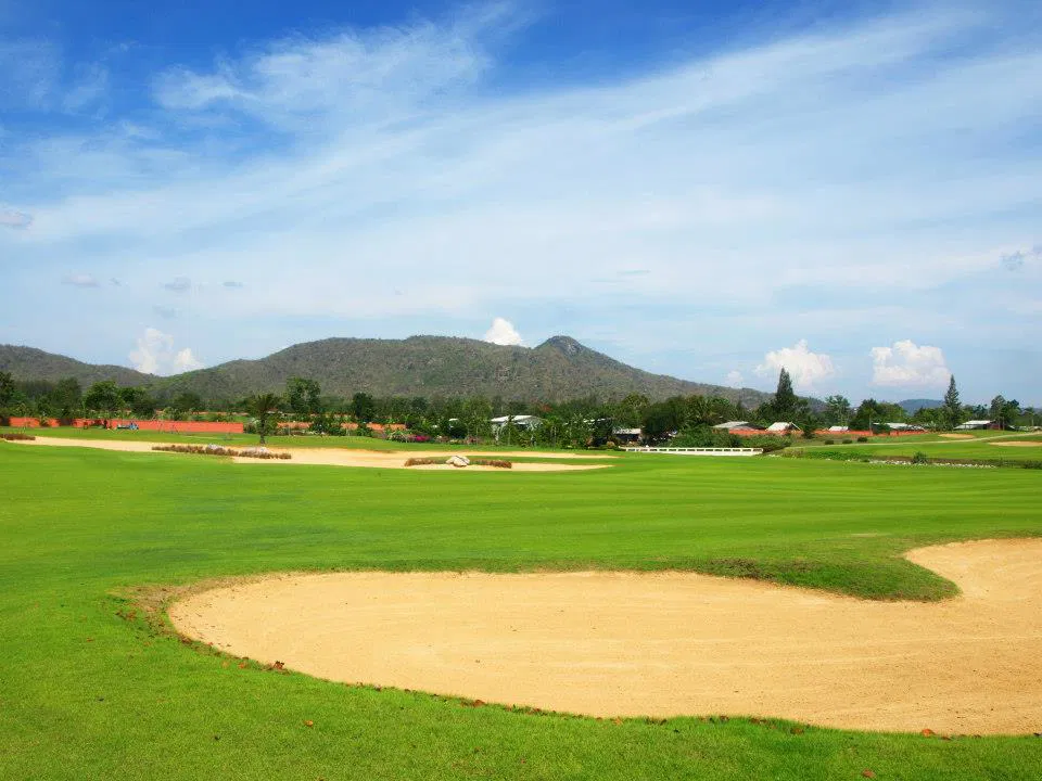 En modern klubbhus med utsikt över Thailandsviken erbjuder utmärkt thailändsk mat. Den här banan i kuststaden ger mycket golf för pengarna.