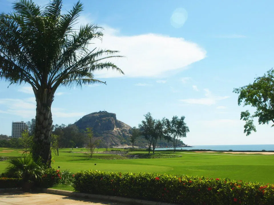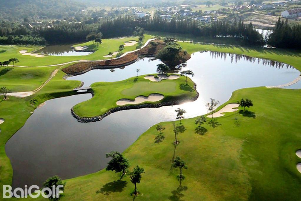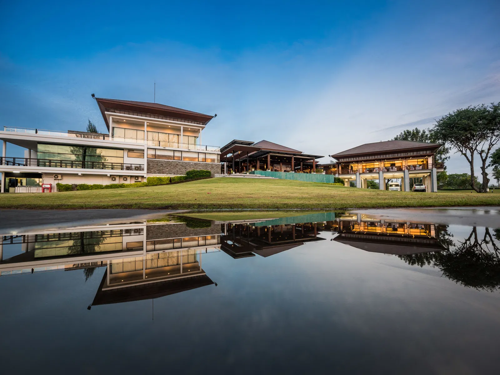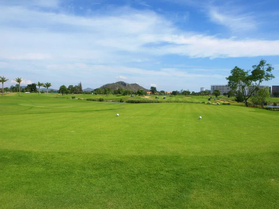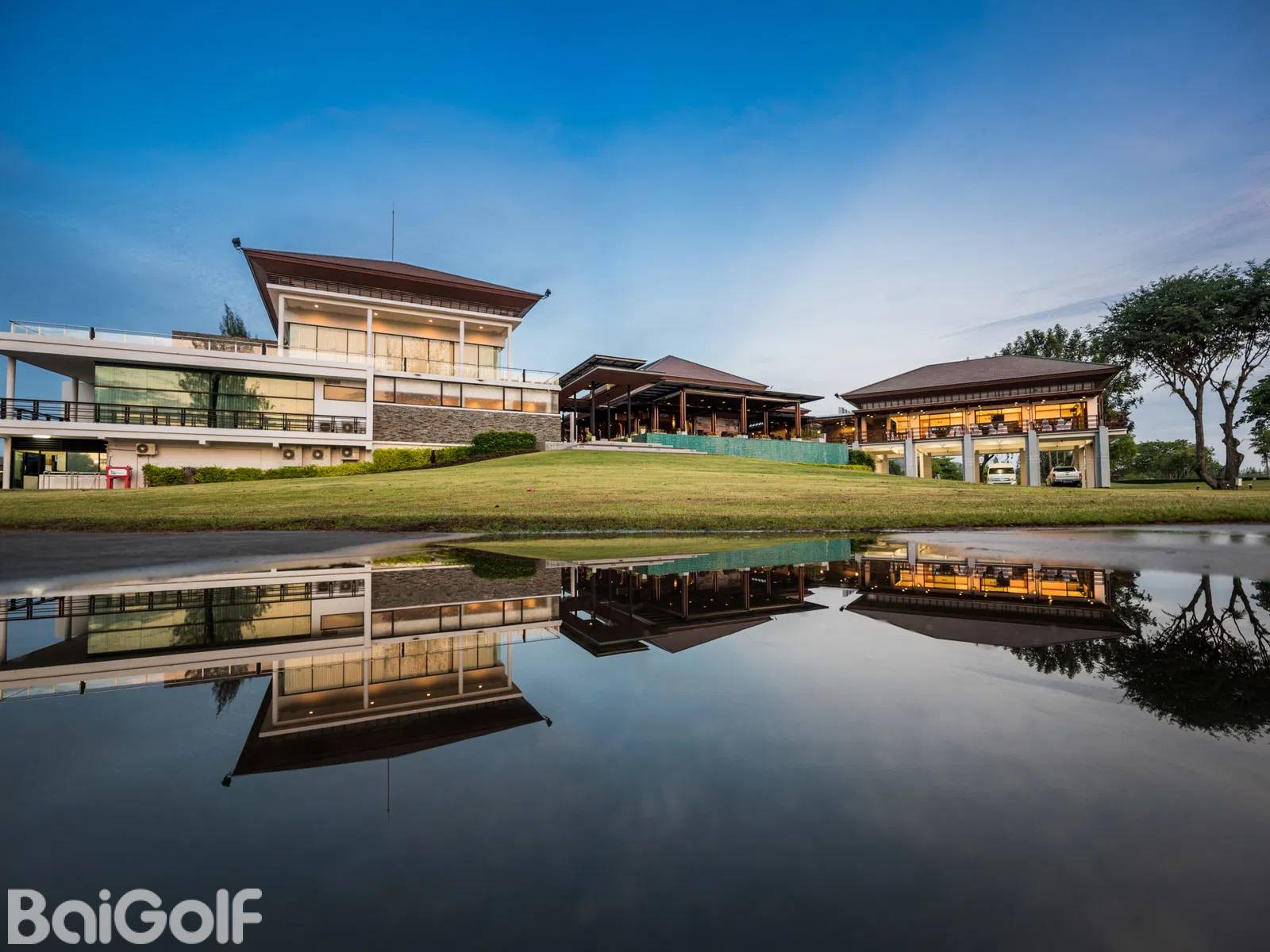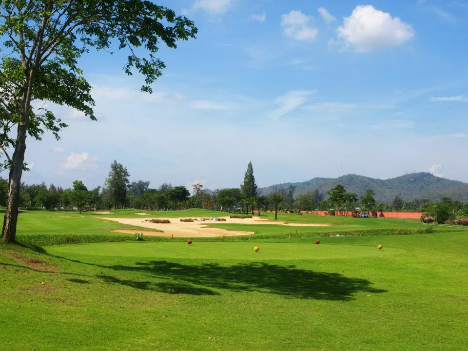 En modern klubbhus med utsikt över Thailandsviken erbjuder utmärkt thailändsk mat. Den här banan i kuststaden ger mycket golf för pengarna.