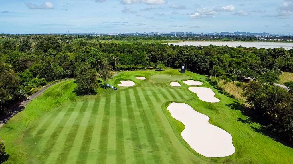Kelab Golf Antarabangsa Laem Chabang adalah sebuah padang golf kejohanan yang direka oleh Jack Nicklaus, dengan pemandangan yang menakjubkan. Ia bukan sahaja padang golf terbaik di Pattaya, tetapi juga salah satu daripada padang golf terbaik sebenar di Thailand. Terletak di atas kawasan seluas 700 ekar, ia terdiri daripada 27 lubang, setiap sembilan lubang mempunyai ciri-ciri dan gaya sendiri. Rekaan yang sangat kreatif telah mendapat pujian sebulat suara daripada para kritikus, dengan penggunaan unik bukit-bukau, tasik, dan lembah sungai yang bukan sahaja mempesonakan, tetapi juga memberi maksud yang mendalam. Setiap jenis topografi mencorakkan satu padang golf sembilan lubang, yang dinamakan sebagai Bukit sembilan lubang, Tasik sembilan lubang, dan Lembah sembilan lubang.