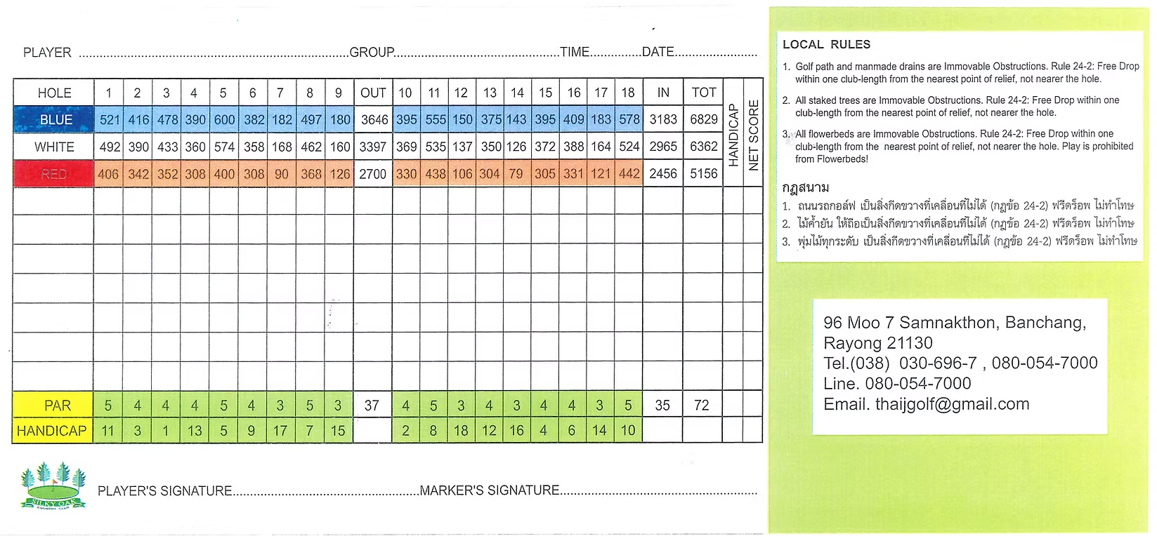 Club Rental | THB 1000 |
