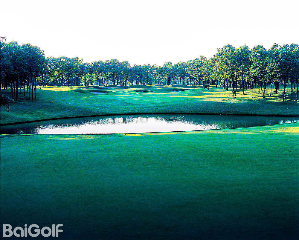 Tree-lined fairways extend outward from the clubhouse to form two circles of nine holes. Highlights include the par-4 sixth, where the green sits behind a small pond; the short par-4 ninth, which is protected by a deep bunker in front of the green; and the par-5 10th, which requires sound strategy to avoid a meandering creek that crosses the fairway.