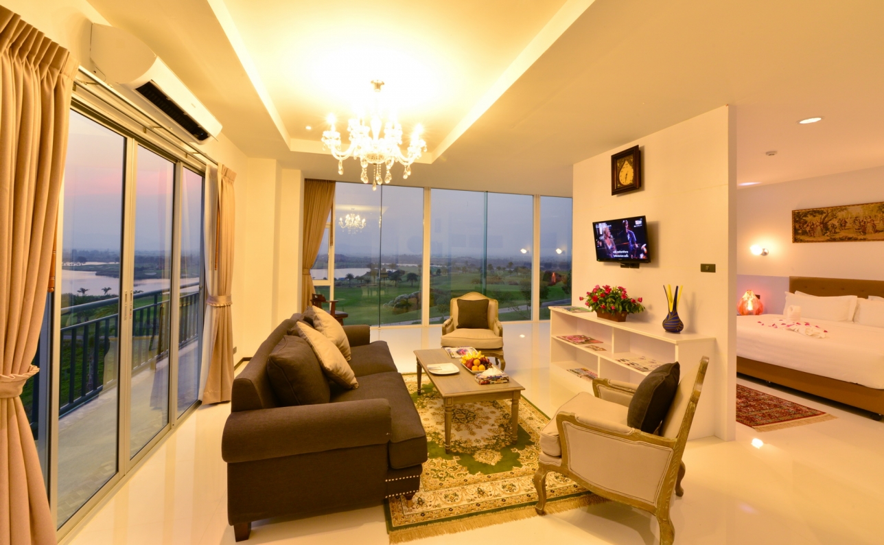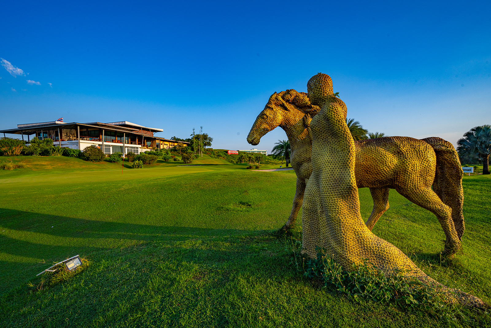 Grand Prix Golf Club is a well-conditioned golf course in Thailand’s Kanachaburi Province that will take the breath away. The course is set in a vast open space with panoramic views of Burmese mountain ranges in the distance. A large river bisects the course and adds to the native scenery. It takes around 30 minutes to reach the site from Kanchanaburi town or 2 hours from Bangkok. Grand Prix makes excellent use of significant mounding and undulations through the fairways and greens. Many holes have split fairways offering golfers both a more challenging and a relaxing approach to the greens. Multi-tiered greens have lots of break so it pays to select the correct club for each approach shot; otherwise 3-putts or worse is likely.