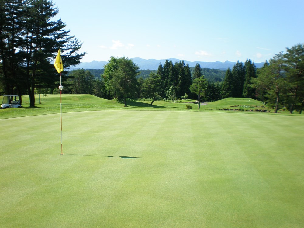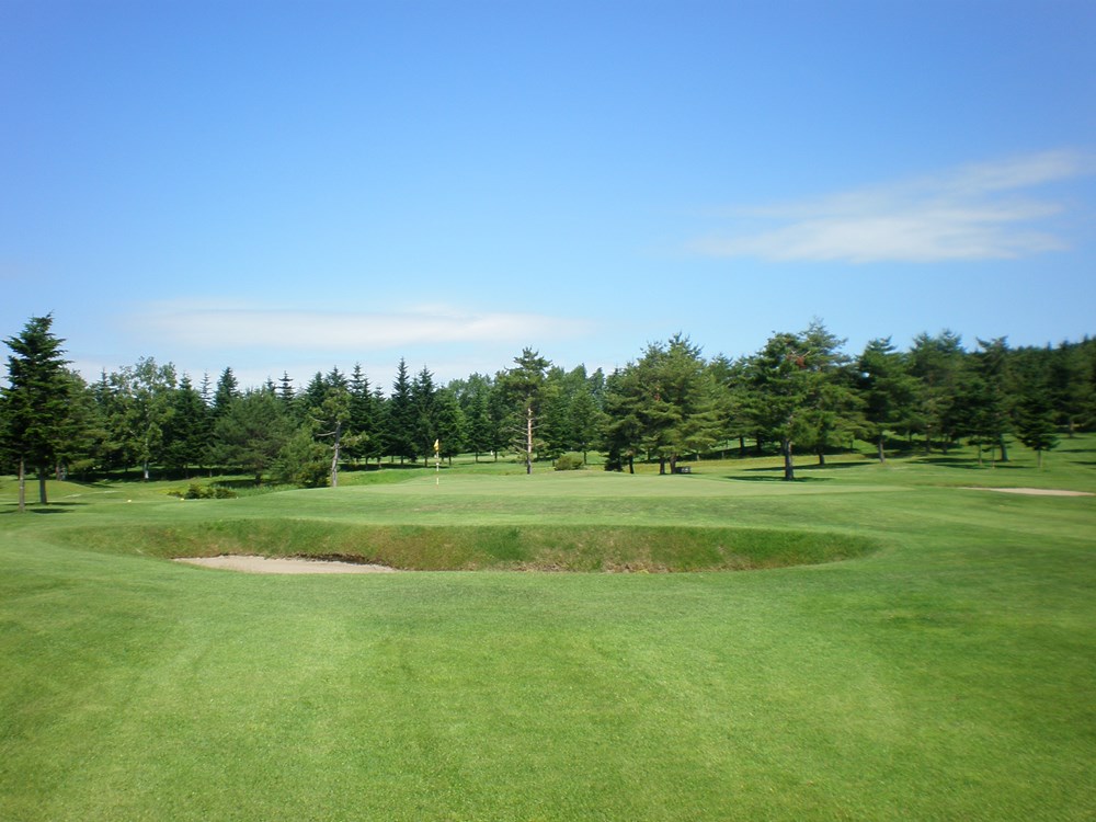 구릉 코스. 이와키산을 바라볼 수 있는 구릉지에 위치하며, 시원한 샷을 즐길 수 있는 레이아웃입니다. 각 홀은 거리가 충분하여 장타가 필요하지만, 목표 지점이 제한된 홀에서는 장타를 노리면 위험이 큽니다. 홀마다 공략법을 바꿔야 하며, 그린 주변에 벙커가 많은 홀도 있어 기술뿐 아니라 때로는 무리하지 않고 페어웨이에 끊어가는 전략적 플레이가 요구됩니다.