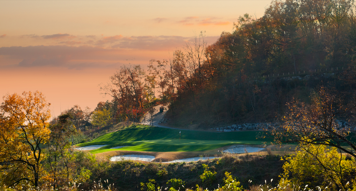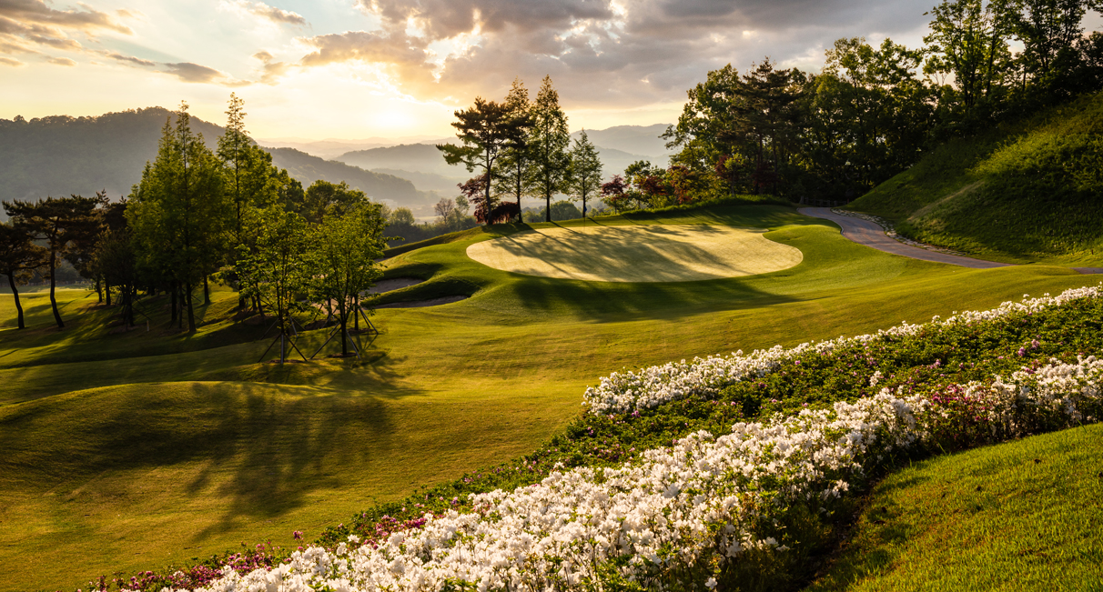두 개의 날개를 연상시키는 독특한 지형을 자랑합니다. 날개의 방향에 따라 우아하고 섬세하며 완만한 곡선을 연출하는 반면, 생동감 넘치고 무성한 지형은 도전적이고 남성적인 분위기를 자아냅니다. 각 홀에서는 세종시청과 도시의 스카이라인을 한눈에 조망할 수 있습니다. 산악 지형의 자연 지형과 나무, 바위를 그대로 보존하여 골퍼들이 도심 속에서도 자연의 아름다움을 느끼고 경험할 수 있도록 설계되었습니다.