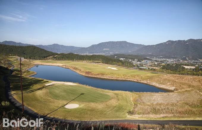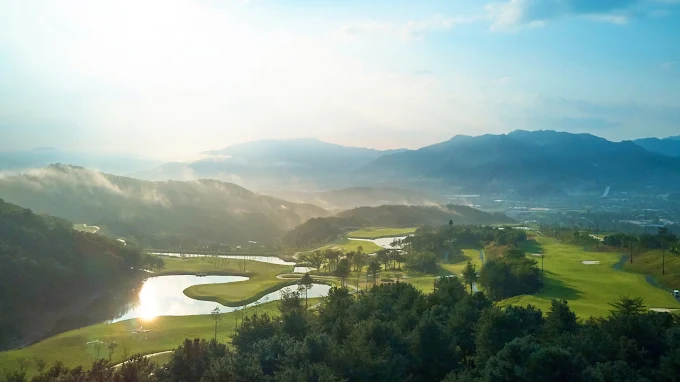 레이크사이드 코스: 해발 270m에 위치한 이 코스는 모든 홀 중 가장 낮은 코스입니다. 9홀 중 7홀은 3개의 큰 호수로 둘러싸여 있습니다. 코스에는 파3 3홀, 파4 3홀, 파5 3홀이 있습니다. 흐르는 물과 큰 호수 사이를 자유롭게 이동할 수 있는 워터프런트 코스입니다. 해발 1,023m의 민도산 강과 연결된 광활한 호수는 아름다운 경관을 자아냅니다.