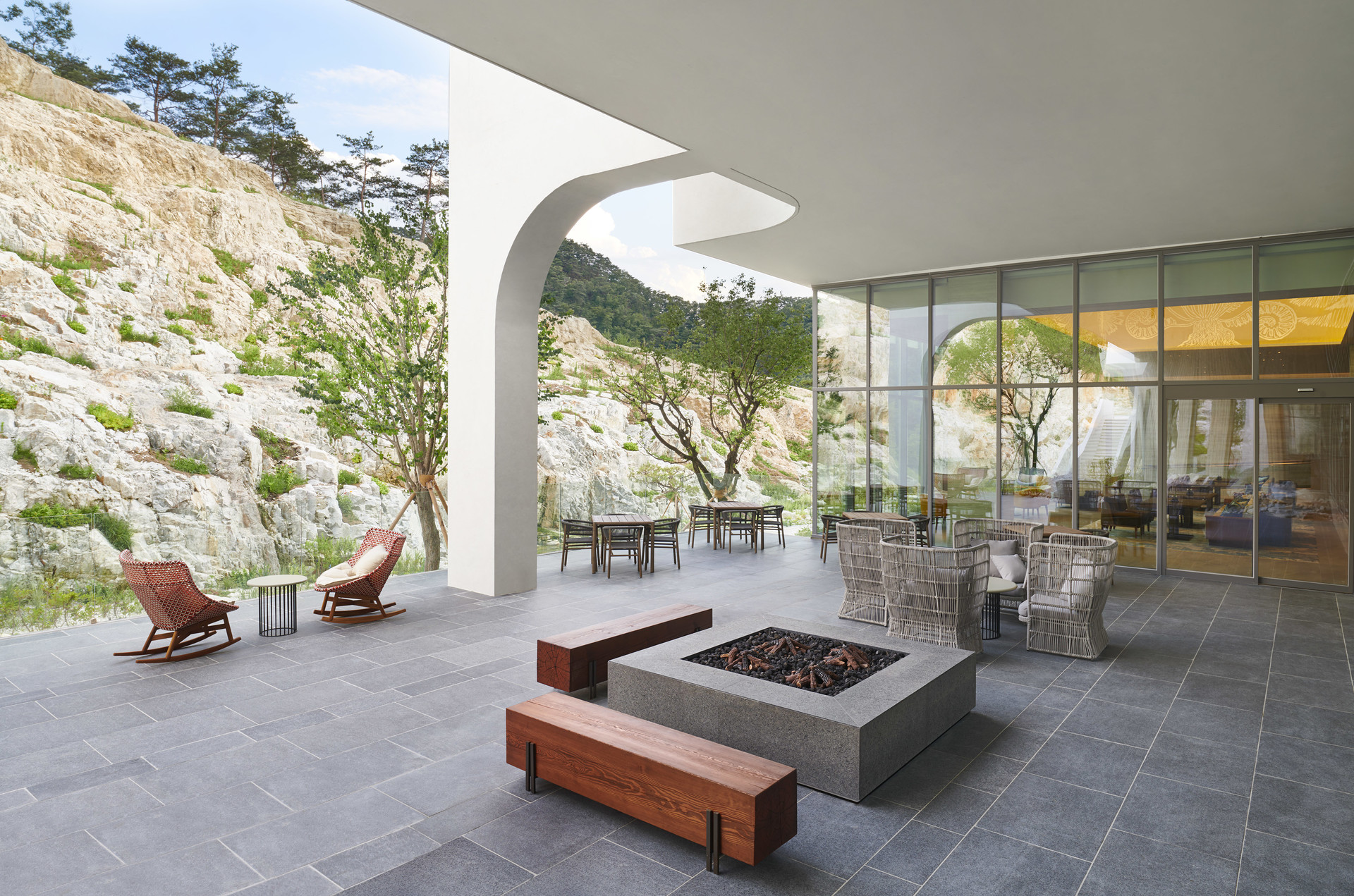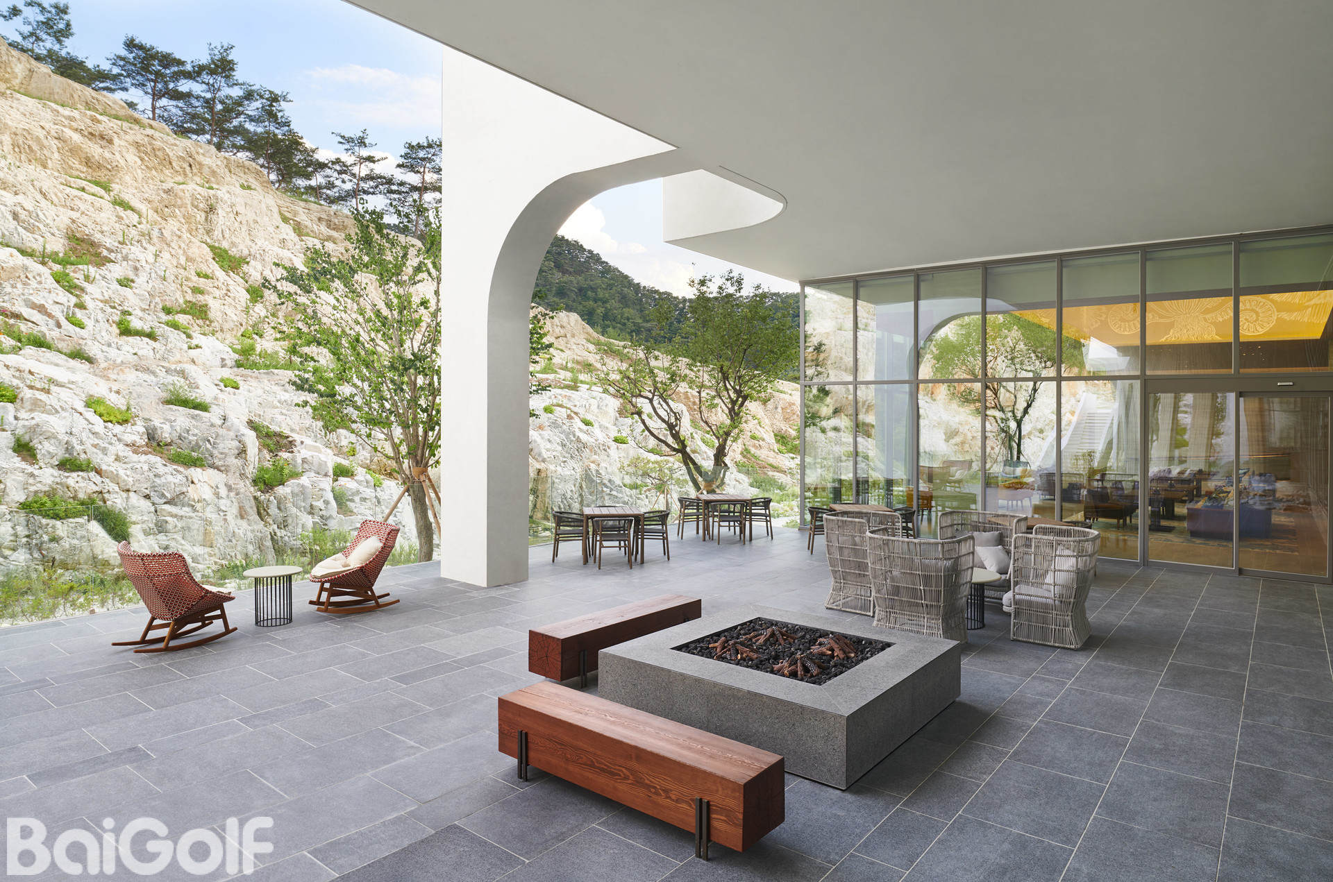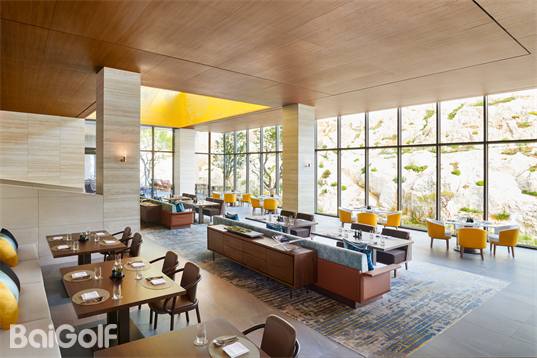 소규모 모임과 이벤트에 적합한 6개의 개인실 외에도 클럽하우스에는 멋진 바위 전망을 감상할 수 있는 화덕 테라스와 골프 코스의 탁 트인 전망을 감상할 수 있는 야외 테라스가 마련되어 있습니다.