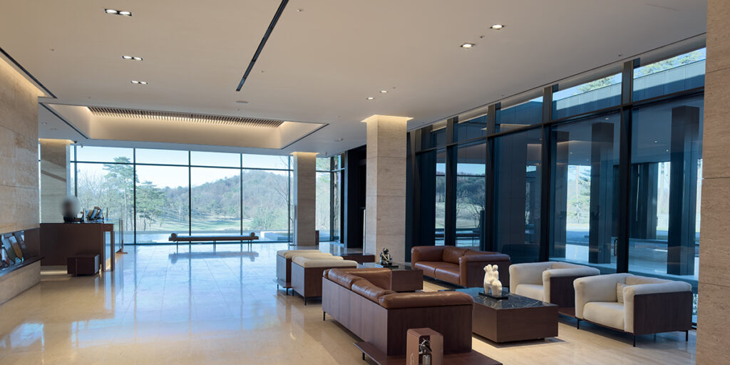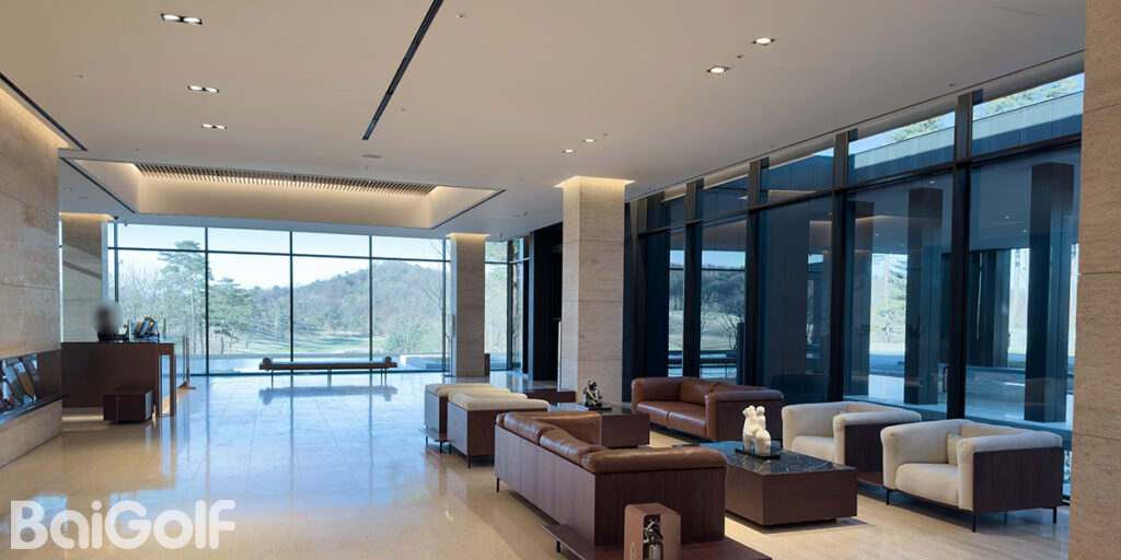 춘천 웅계 골프 클럽은 흐르는 물과 폭포가 경이로우면서도 도전적인 경험을 선사하는 18홀 퍼블릭 코스입니다. 페어웨이와 그린은 질감이 곱고 촘촘한 고품질 크리핑 벤트그래스로 덮여 있습니다. 구불구불한 페어웨이는 실제보다 좁아 보이게 합니다. 첫 홀부터 이 코스는 골퍼들에게 경사와 페널티 구역을 고려하여 적절한 샷 라인을 선택하도록 전략적인 플레이를 요구합니다. 클럽하우스는 현대적이고 건축학적으로 아름다운 디자인을 자랑하며, 동양풍 정원과 연못, 그리고 유리창을 통해 펼쳐지는 숨 막힐 듯 아름다운 코스 전망을 자랑합니다. 넓은 라커룸과 완비된 사우나는 골프 라운드 후 편안한 휴식을 선사합니다. 지하 주차장에는 전기차 충전 시설도 완비되어 있습니다.