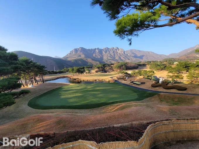 힐링 나인과 에콜로지컬 나인, 두 개의 원형 코스로 구성된 산악 골프 코스입니다. 힐링 나인의 3번 홀은 620m의 더블 도글렉 파5 코스이며, 에콜로지컬 나인의 4번 홀은 514m의 오른쪽 도글렉 코스로, 두 홀 모두 상당한 워터 해저드를 갖추고 있습니다. 뛰어난 골프 실력과 기발한 전략이 요구되는 매우 까다로운 홀들이 여러 개 포함되어 있습니다. 울산바위의 장엄한 경관 속에서 자연의 경이로움과 경이로움을 경험해 보세요.
