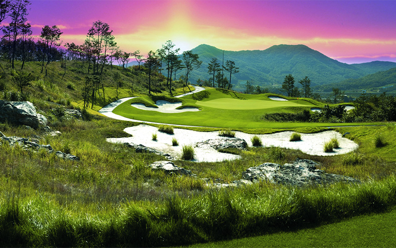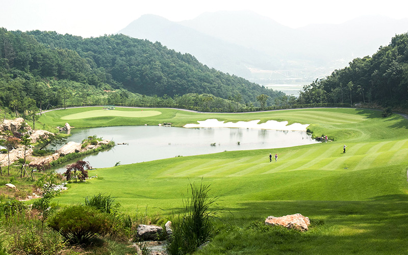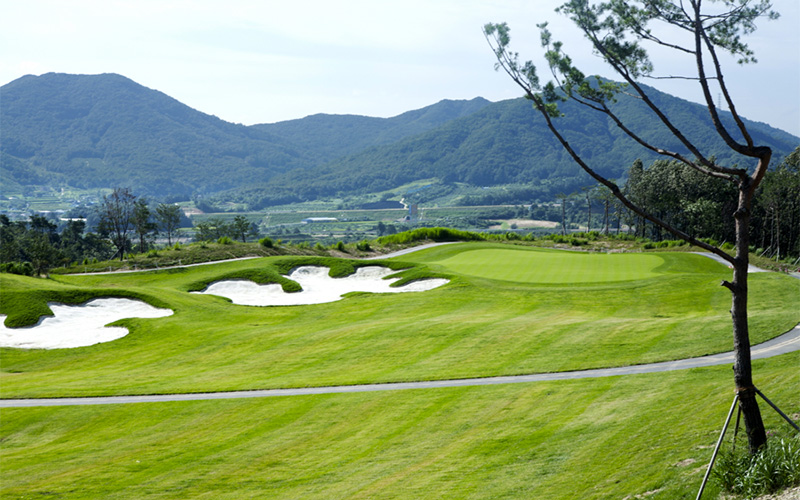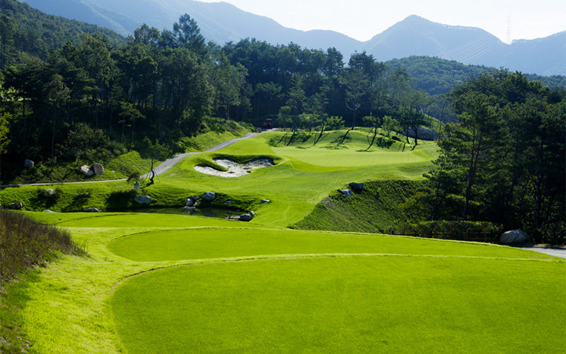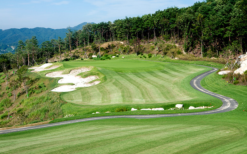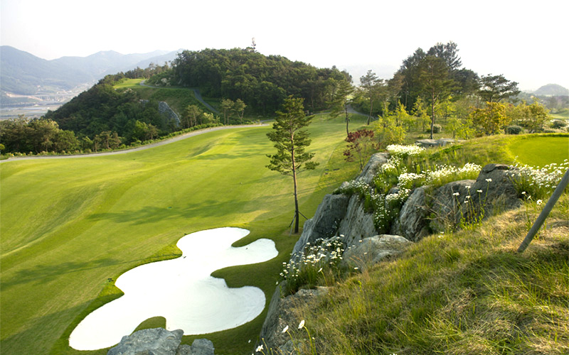 동 코스는 자연림과 계곡, 그리고 웅장한 암벽이 자연 장벽 역할을 하는 생동감 넘치고 도전적인 코스입니다. 서 코스는 자연 계곡의 능선과 분지를 활용하여 넓은 연못을 조성하여 세심하게 설계되었으며, 탁 트인 전망을 자랑하는 평평한 페어웨이를 제공합니다.