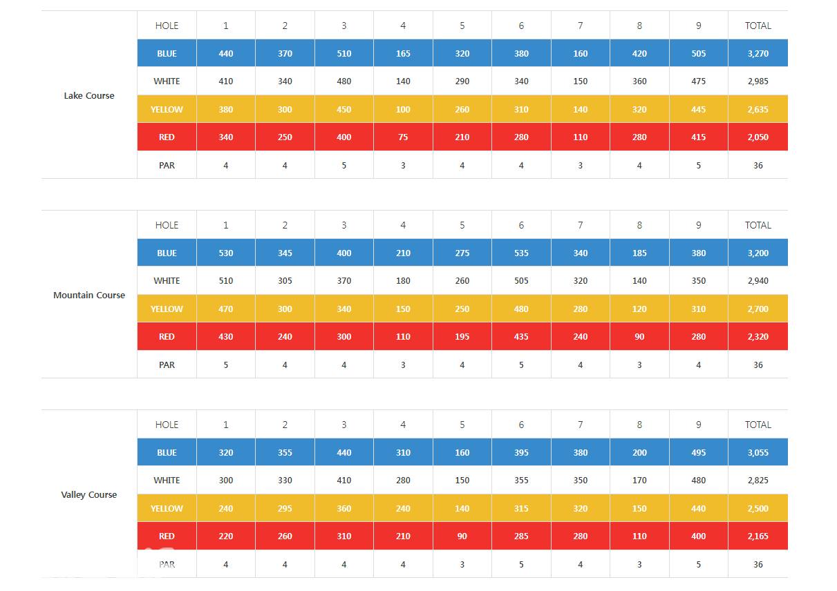 골프장 상태 그린/페어웨이 상태 골프장 난이도 캐디 서비스 만족도 가격 만족도 클럽하우스 시설 만족도 식사 평가