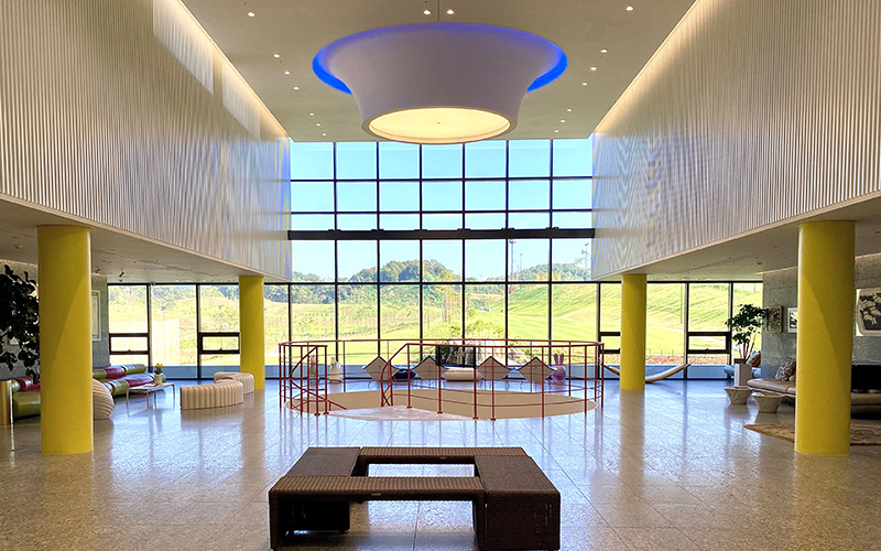 클럽하우스 로비에 들어서는 순간, 10미터 높이의 폭포가 눈앞에 펼쳐지고, 수백 그루의 자생 철쭉이 어우러져 숨 막힐 듯 아름다운 풍경을 연출합니다. 코스 디자인은 시각적 매력과 전략적 도전의 균형을 이루어 모든 홀을 어느 각도에서든 감상할 수 있도록 설계되었습니다. 8개의 호수를 배치하여 끊임없이 변화하는 풍경을 만들어내며, 주변의 아름다운 자연과 완벽한 조화를 이룹니다.