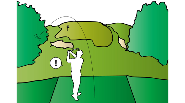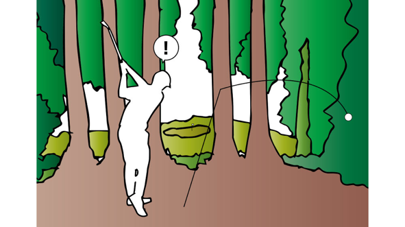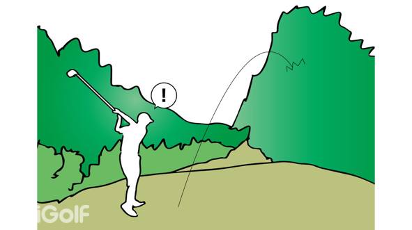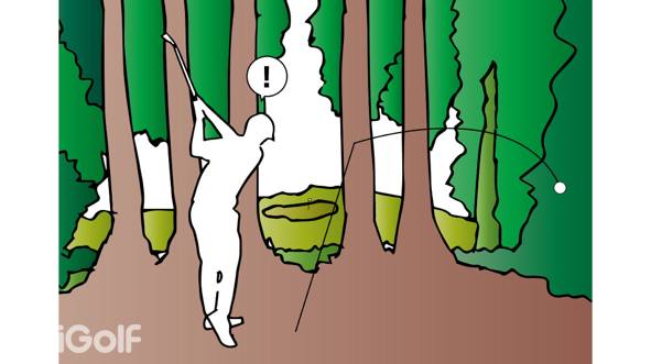 球进了树林时一回事,但之后发生的事情才是问题所在。 你是否仅仅因为能看到果岭而在狭窄的树林中打出一个赌博性的球?一个职业选手也许能做到这一点,但普通人没有那样的技能。
