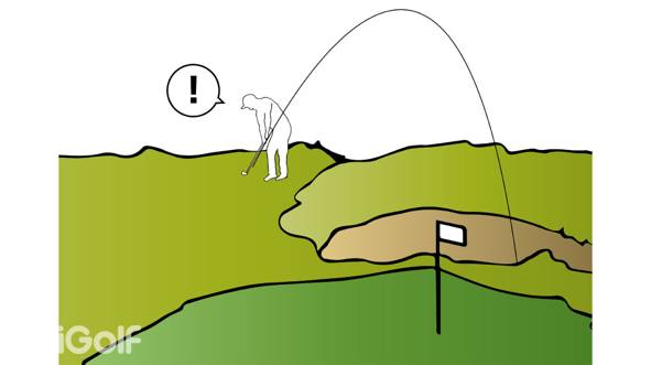 通常情况下,高级球手都会尽量避免进入沙坑。 如果进洞时越过沙坑,而果岭离沙坑很近,或者果岭左侧有一个倾向于向左飞的沙坑,你最坏的情况是设法让球不进入沙坑,就可以打出一个柏忌。 然而,如果你在打球时只看到果岭,那么打到沙坑的概率就会增加。