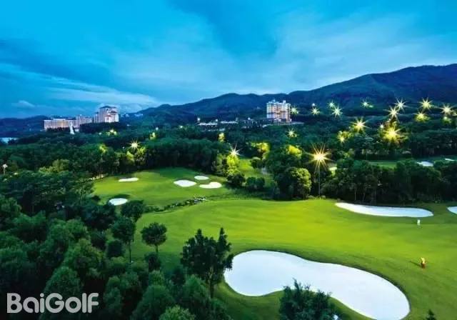 深圳观澜湖高尔夫球场是亚洲最大的高尔夫球场,横跨于近20平方公里的青山绿水间。整座球场共有12锦标级218洞。球场的每个球道都有黑、金、蓝、白和红五个发球台,分别适合职业、高级业余、业余、初学者和女士。同样入选“全球500最佳球洞”的第七洞,被人称作”魔鬼洞”,这个398码的4杆洞,也被誉为“亚洲最佳24洞”之一,让很多球手痛并快乐着。