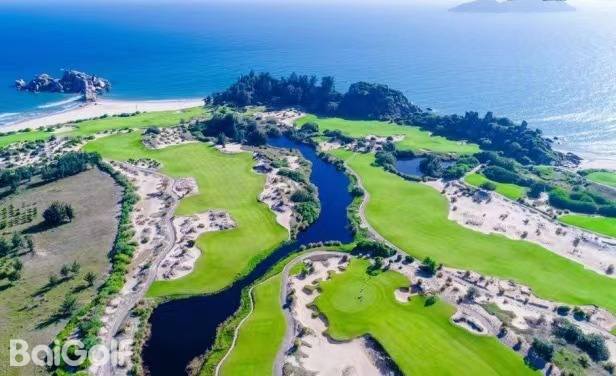 博鳌高尔夫球场是一座中国业内首创、亚洲唯一的全岛型林克斯风格球场。设有18洞,72杆,全长7019码的球道上,前9洞绕岛环走,周围环江绕海,四面碧水泛波,融海天风光和远山近水于一体;后9洞岛中穿行,集沙池奇石、椰林苇荡、田园景色于一身。对于这里极具挑战性的球道风格,被称为是“中国最具特色的球场之一”。