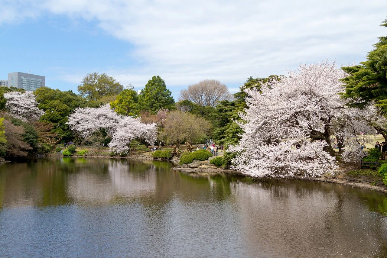 新宿御苑也是名列前茅!传统庭院与现代西洋风格相结合,远望可以看见城市的高楼背景,这样强烈的对比感造就了这处赏樱名所。