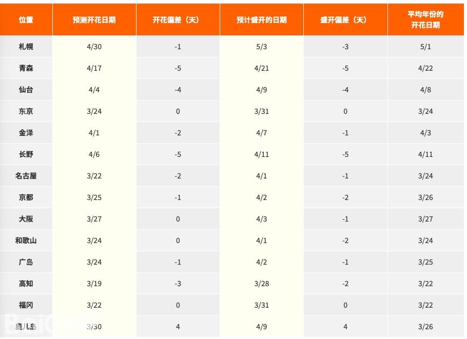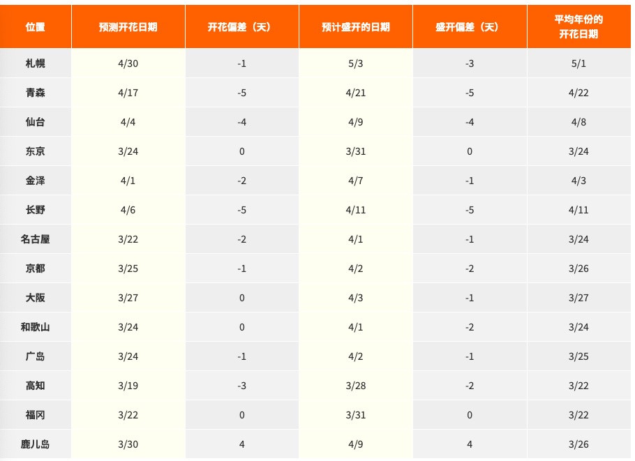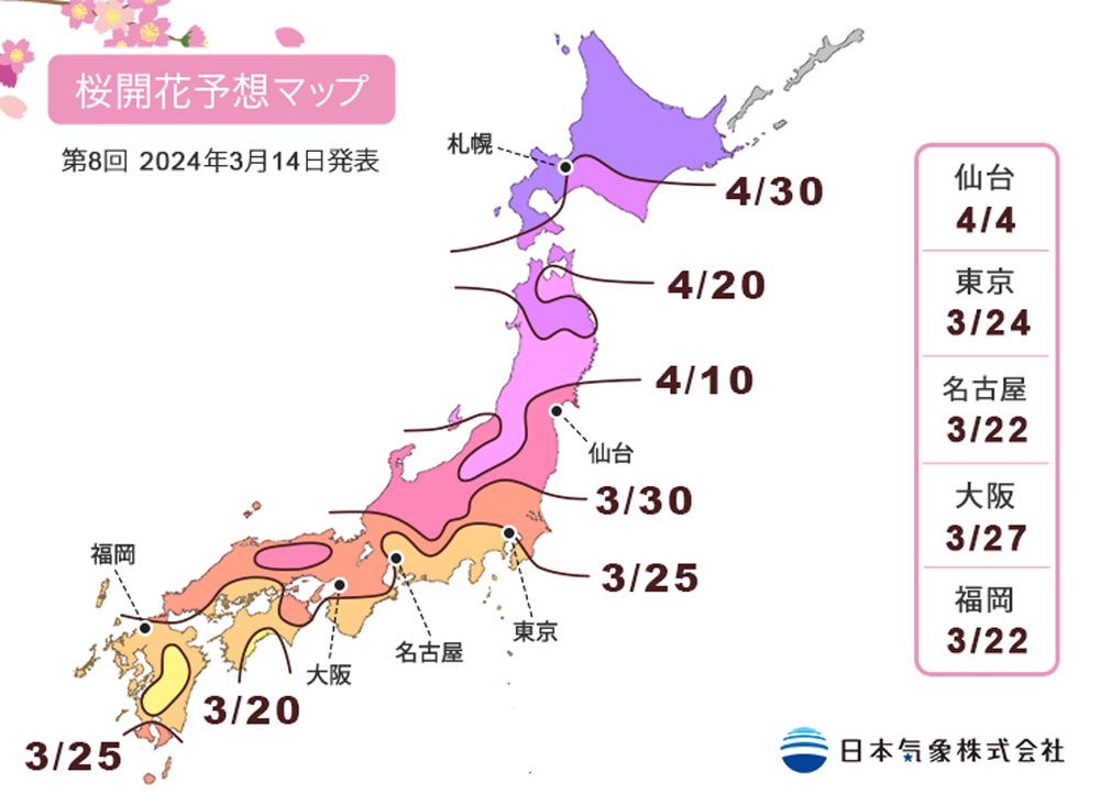 *文内开花预测日期参考日本气象株式会社公布的“2024年樱花开花·盛开预测(第8回)”。