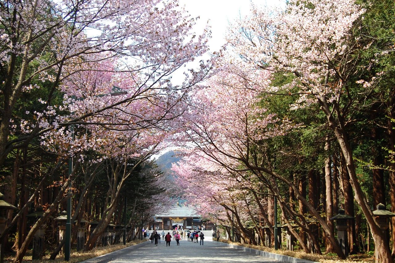 札幌的圆山公园,是当地人的“休闲后花园”。往公园腹地走,就是著名的北海道神宫,同样也是札幌一处历史悠久的赏樱圣地。除了上千株虾夷山樱花、染井吉野樱、八重樱,还有数量可观的梅花,由于气候原因,梅花和樱花会同时绽放,粉白交融,把浪漫氛围渲染到极致。