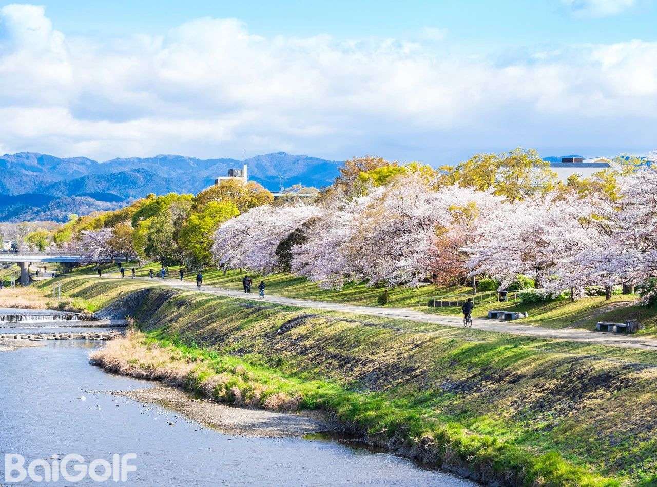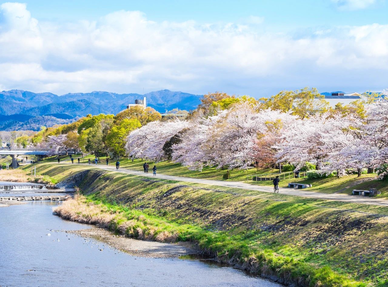 要说最能代表京都气质的赏樱地,那不得不提鸭川沿岸!作为当地人喜爱的野餐地,鸭川浓郁的生活气息和松弛感,是别处难以寻觅的。在鸭川左岸三条到四条之间,种植了成排的樱花,被称为“花之回廊”,每年都会吸引无数追樱旅人的造访。鸭川穿过京都中央,河上有上千座桥,岸边情侣成群,也有着情侣河之称。