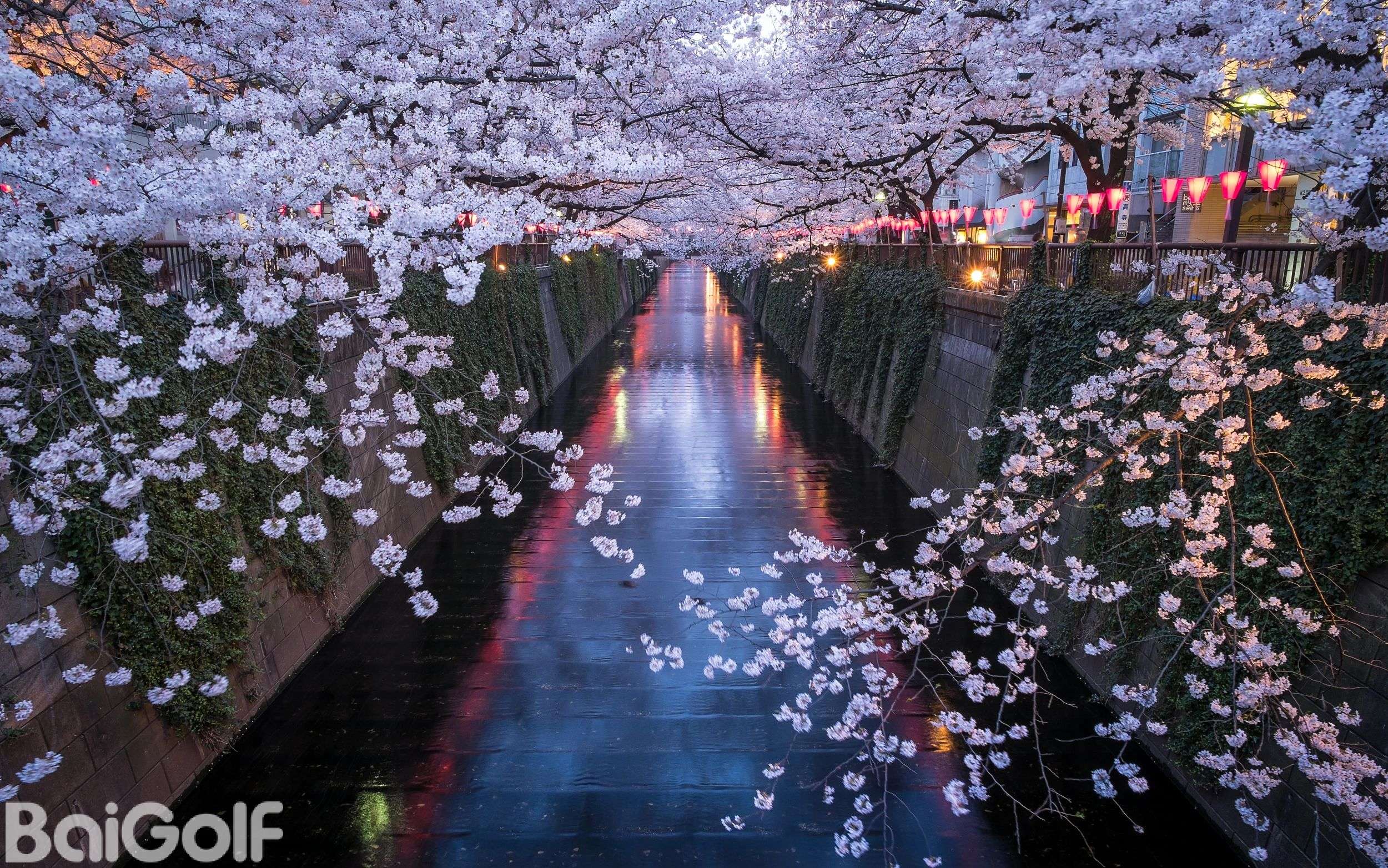 目黑川是东京的赏樱名所,约会圣地!河畔种满了樱花树。随着花瓣飘落,水面变成粉色的樱花溪流,晚上还可以赏夜樱。