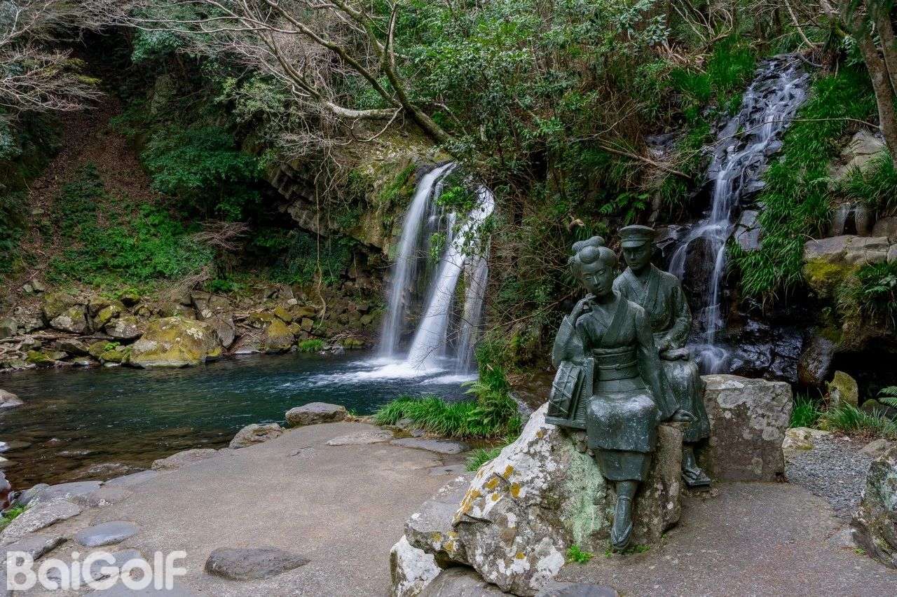 河津七滝为伊豆著名瀑布,在这里你可以欣赏七道高度、情态各不相同的瀑布美景。值得一提的是,其中名为“初景滝”的瀑布正是《伊豆的舞女》中的瀑布,还能在此看到“我”与舞女的雕像。
