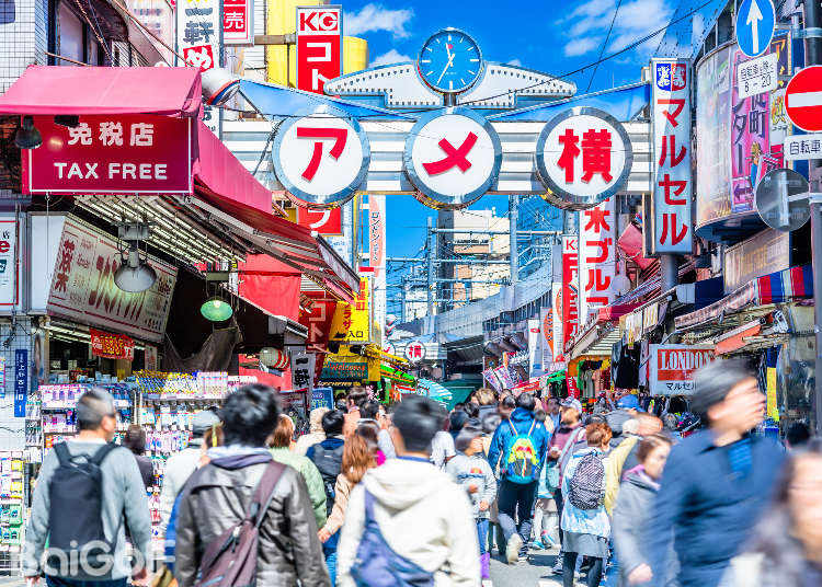 阿美横丁街由上野车站南部的高架铁路桥下一路延伸到御徒町的阿美横町。早期以贩卖美军二手商品出名,如今则以各种零食饼干、药妆、 干货、 鱼货等各式”平民式“商品为主。也有新鲜鱼货及海鲜可以品尝。由于阿美横丁远近驰名,更吸引众多商家争相进入邻近商圈,应有尽有可一次购满所需。