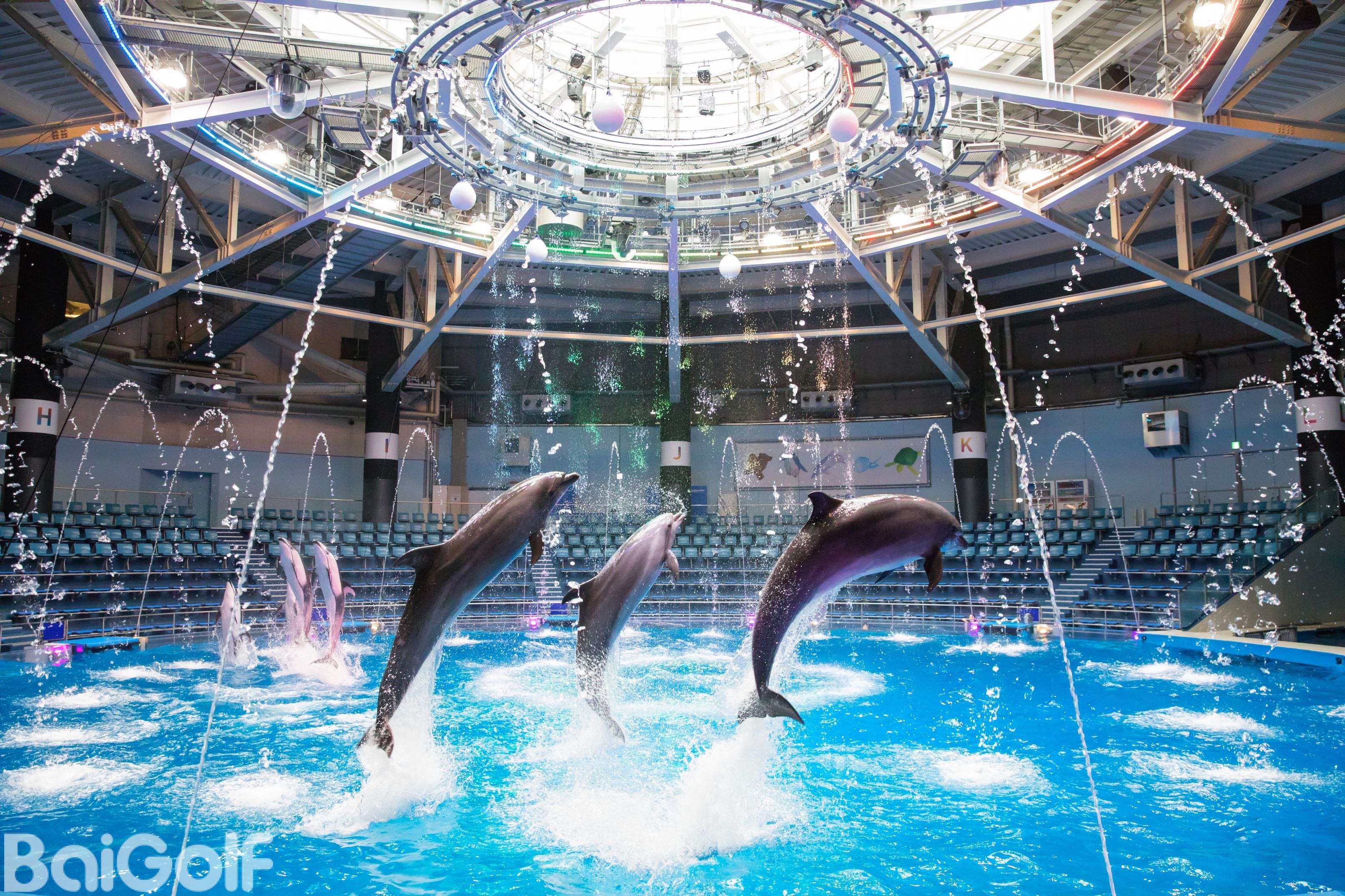 水族馆以“亲近大海与河流”为主理念,设置巨大的隧道式水族箱、水母馆、海豹馆等设施,展出约450种、共计约4000只海洋生物。这里每天都会举办海洋生物表演,孩子们可以通过这些活动,观察、了解海洋生物。
