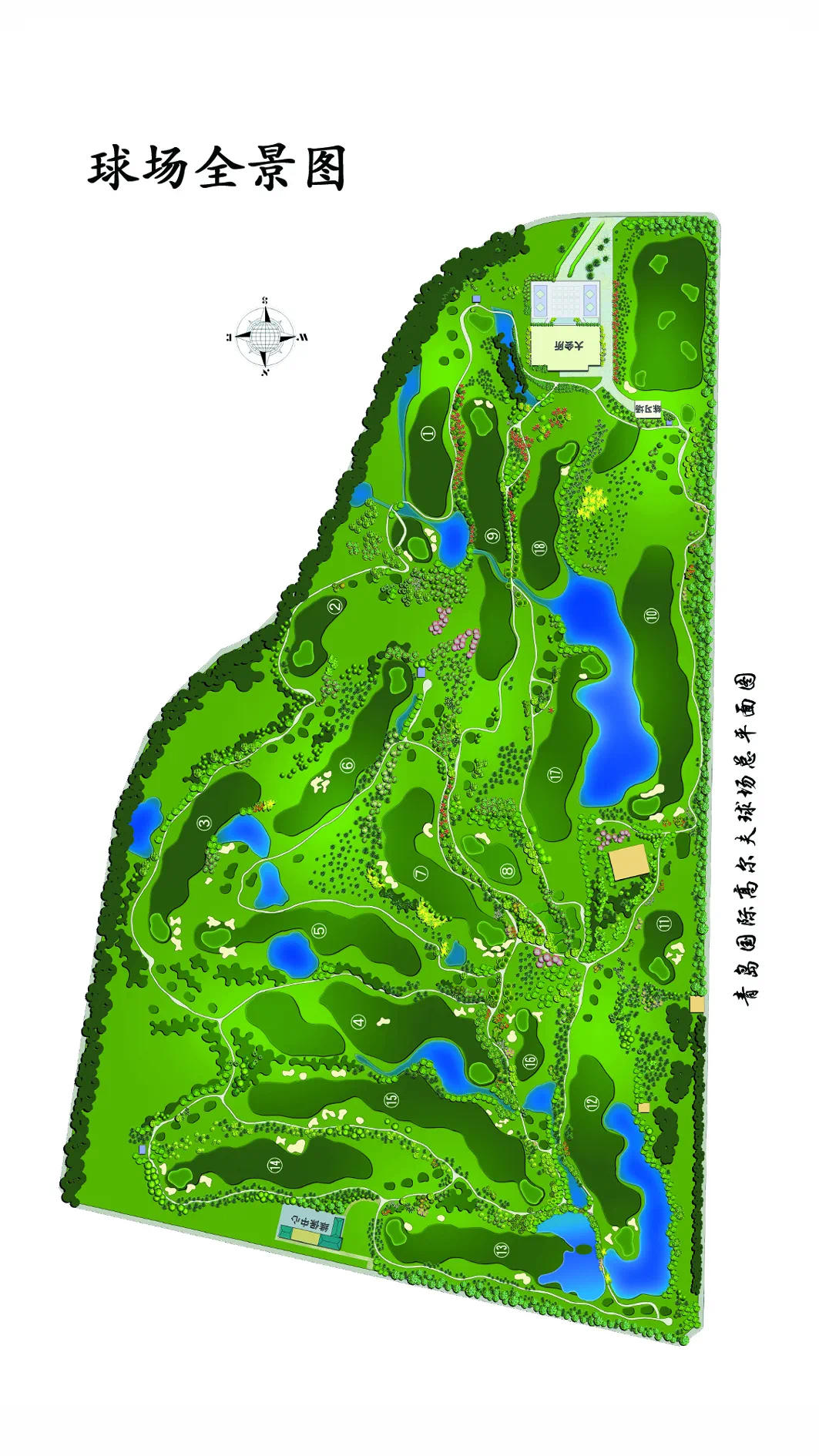青岛国际高尔夫俱乐部于1991年经国家批准建设,球会总占地面积1500亩,为国际标准的18洞高尔夫球场,球道全长约7010码,标准为72杆。
