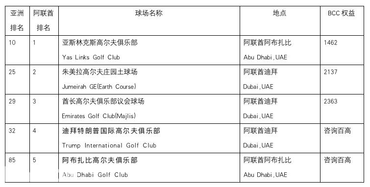 *以上排名数据来源第八届亚洲百佳球场名单。价格数据根据日期以及球场政策可能会变动,最新讯息请咨询百高客服。