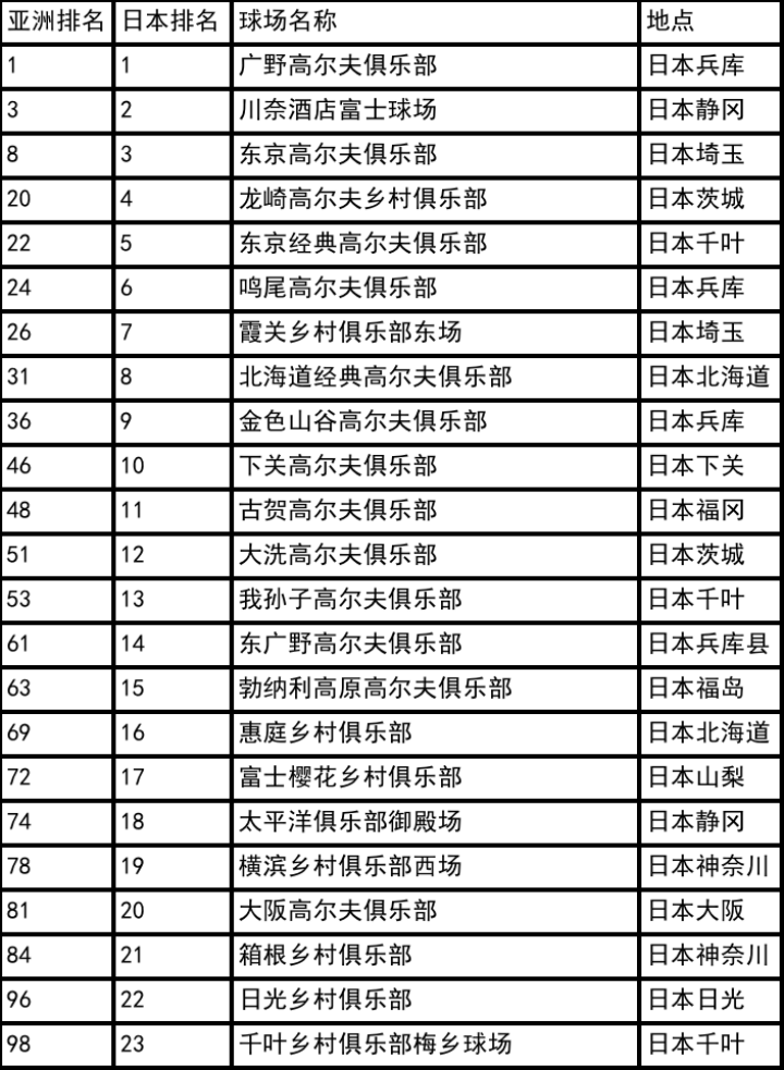 *以上排名数据来源第八届亚洲百佳球场名单。