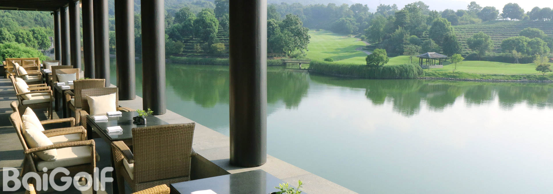 浙江省中部を流れる富春江のほとりにある「富春山居リゾート」の中に位置する超一流ゴルフクラブ。杭州空港から車で約1時間、上海から車で約3時間と距離はあるものの、リゾート地区の中にはゴルフ場のほか、リゾートホテルや別荘、スパなどが設けられており、レジャースポットとしても人気が高い。