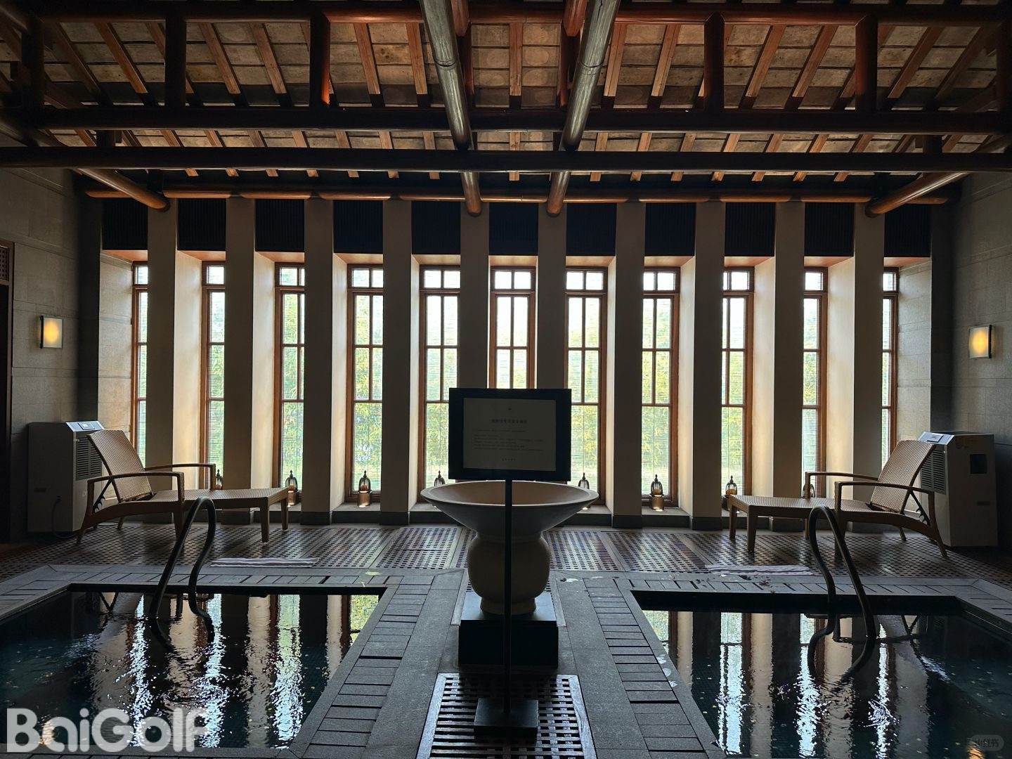 クラブハウスがホテルと内外装が統一されており豪華。レストランは上海新天地の有名コンチネンタルレストラン「T8」から名をとおり「富春T8」と呼ばれている。風呂が18度、41度、43度の3つの温度に分けられているのもうれしい。