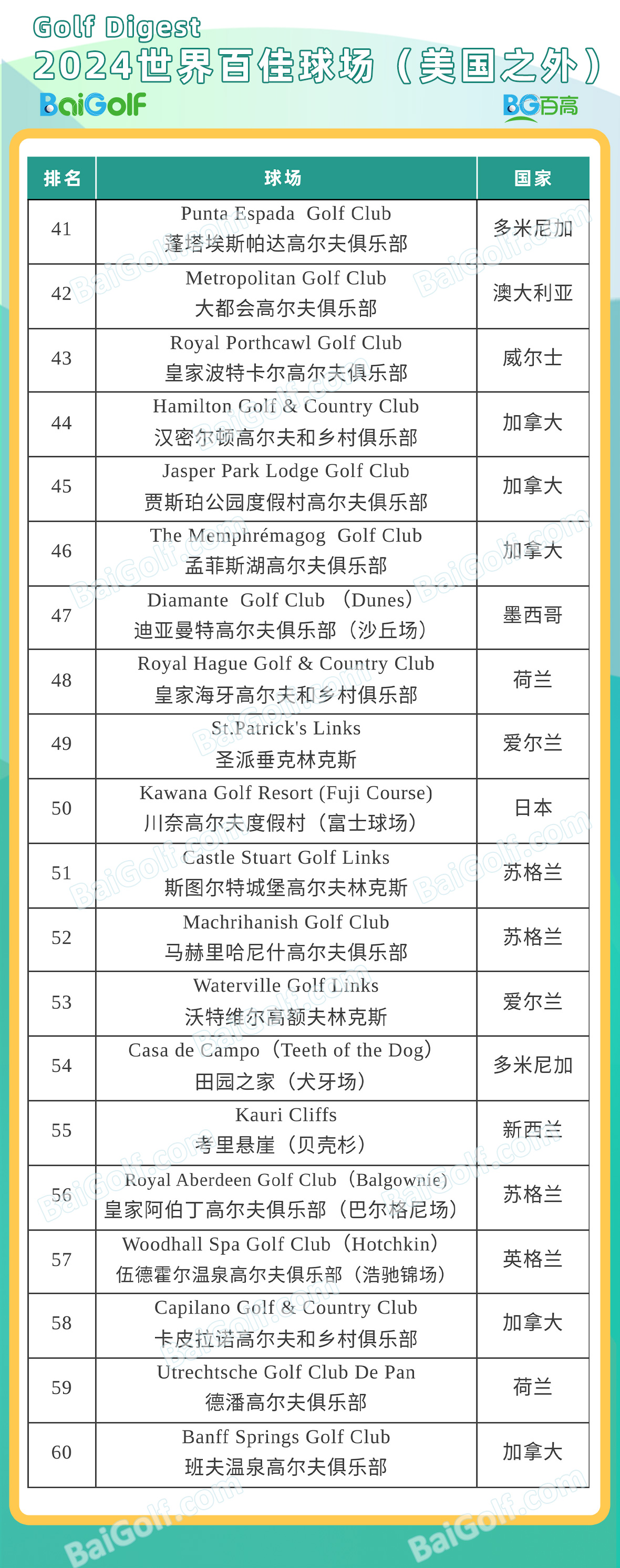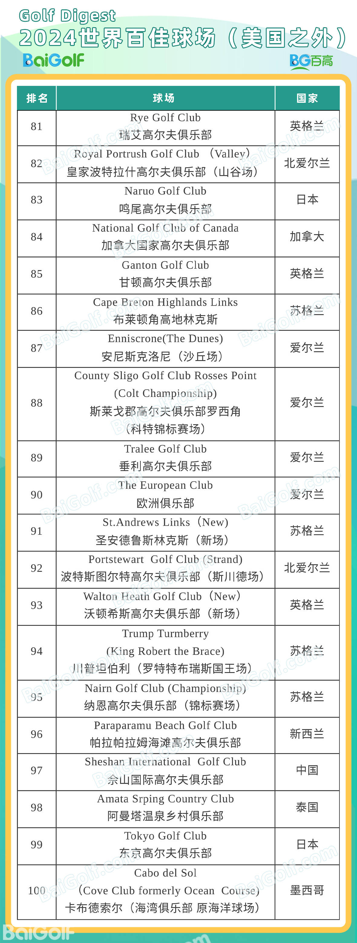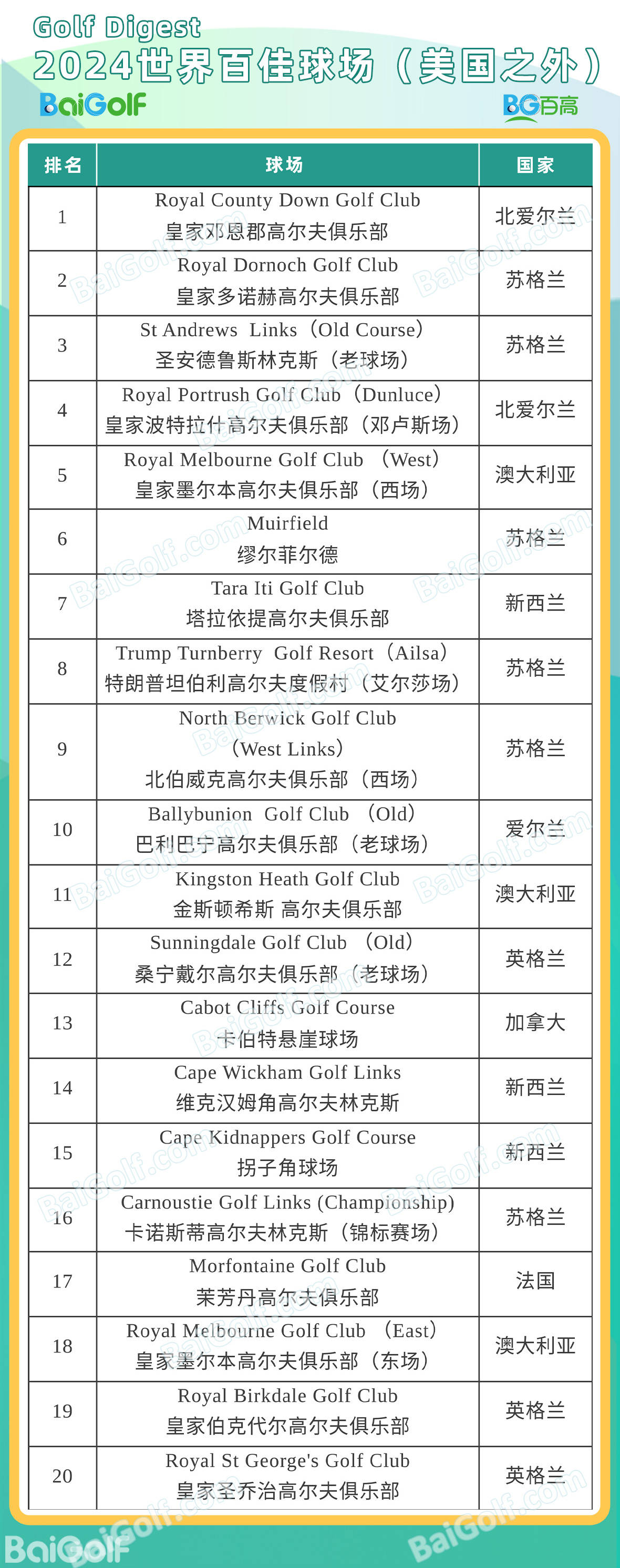 排名数据:GolfDigest World's 100 Greatest Golf Courses 2024-2025