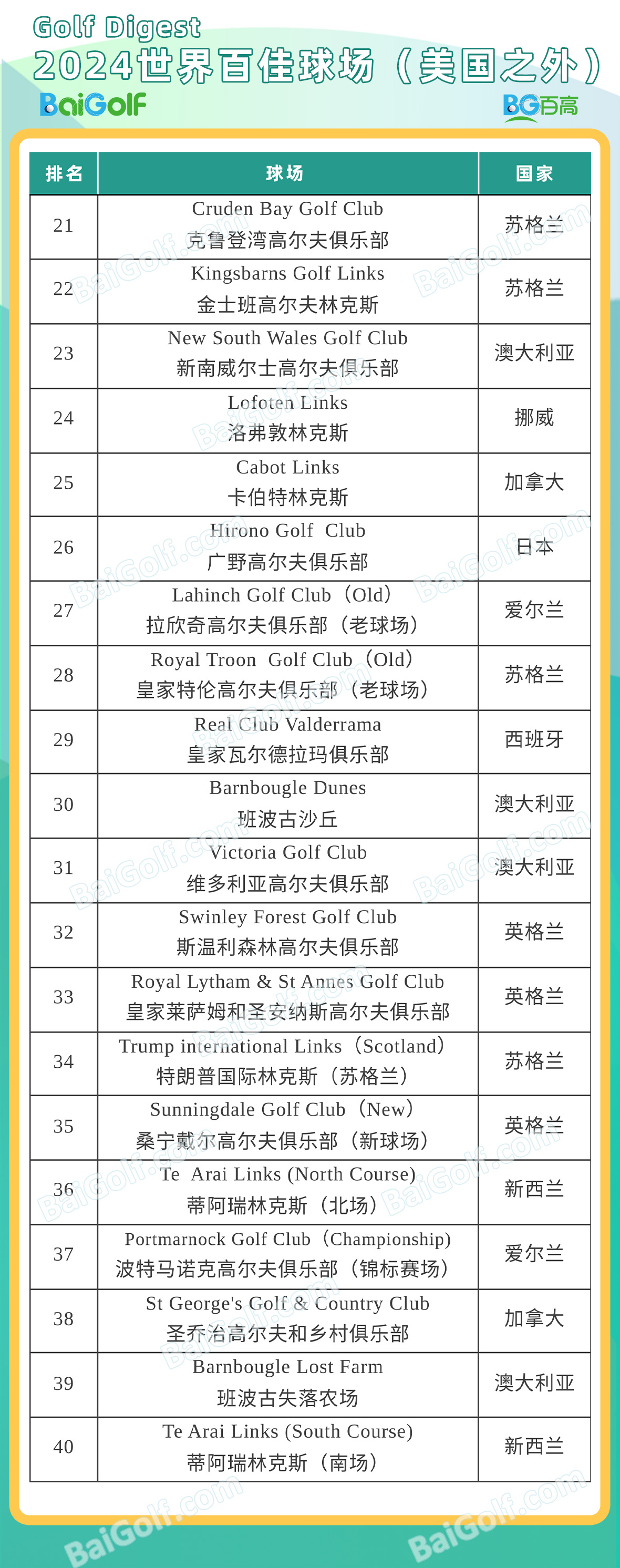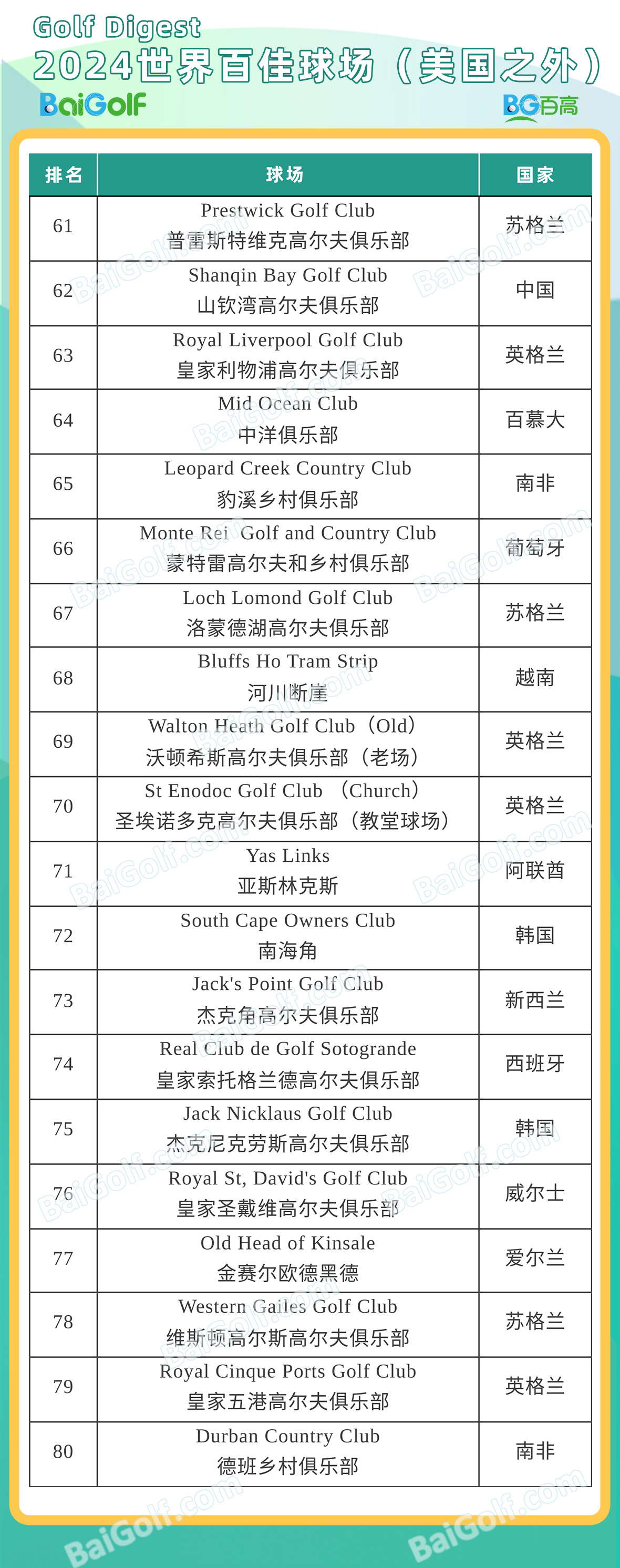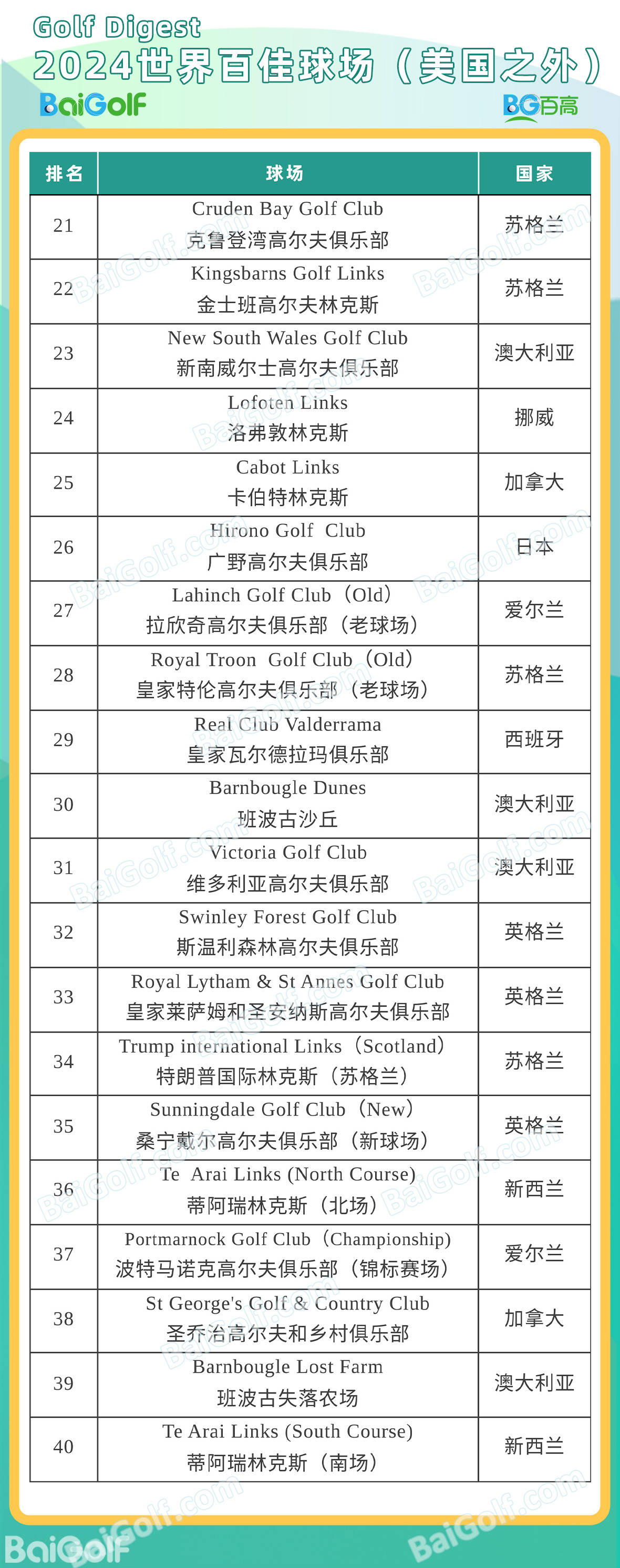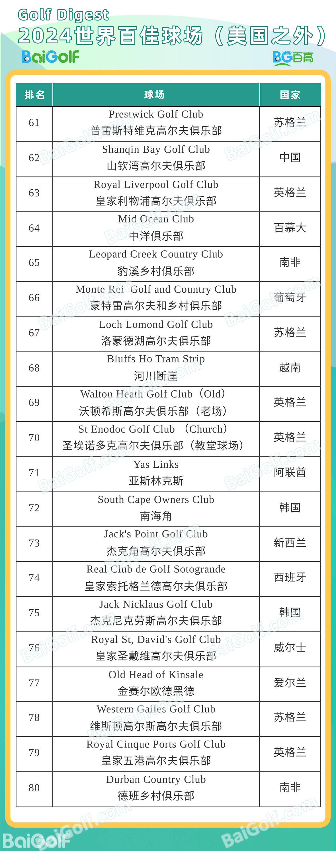 排名数据:GolfDigest World's 100 Greatest Golf Courses 2024-2025