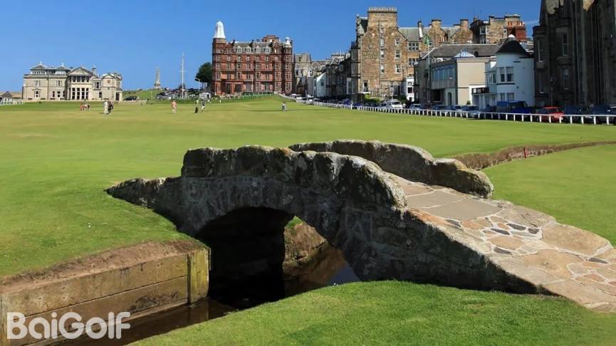 第17洞Road Hole被许多著名球手称之为全世界最难的4杆洞之一,让很多人闻风丧胆。第18洞的Swilcan Bridge(斯威肯桥),是这里最著名的地标式建筑。无论是球员或球迷,皆以走过这座桥为荣。石桥不大,约3米长、2.1米宽、1.8米高,是一座简单的罗马式建筑,至今已有600多年的历史。这座桥最初是供当地牧羊人放牧时通过的,现在它是每次顶级赛事的颁奖台,目睹了一次次赛事,也有无数巨星在桥上留下了他们的足迹。