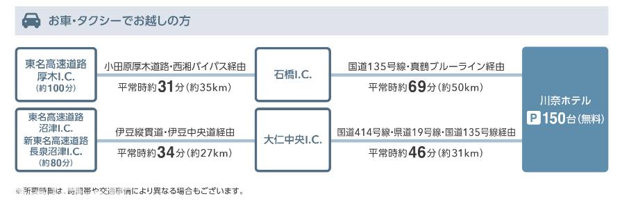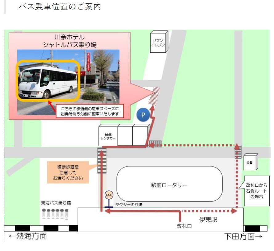 请注意,在川奈站等候的出租车数量不多。 (无法预订出租车)。