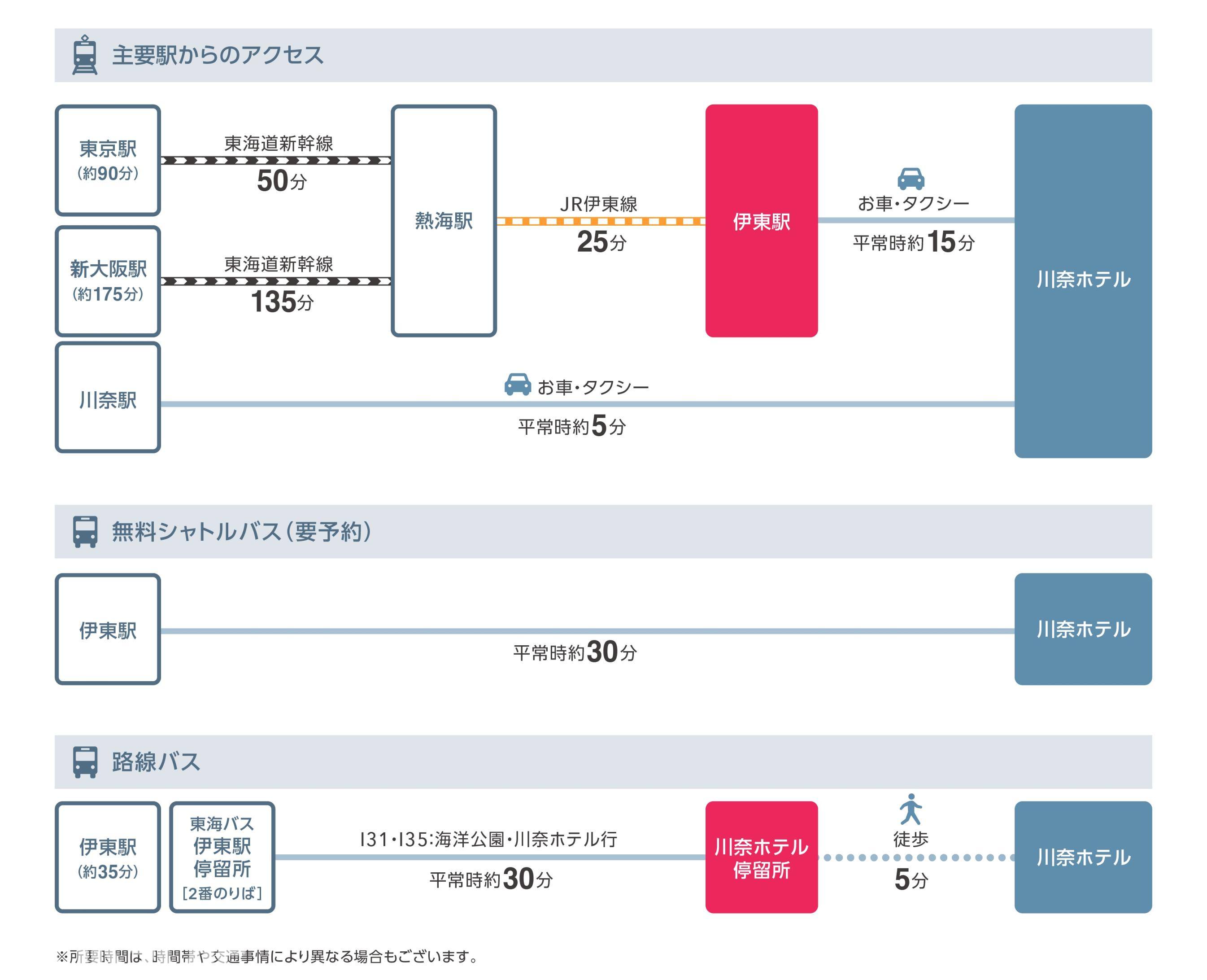 从川奈酒店出发:上午 10:15、中午 12:30、下午 2:30、下午 3:50(共 4 班车)