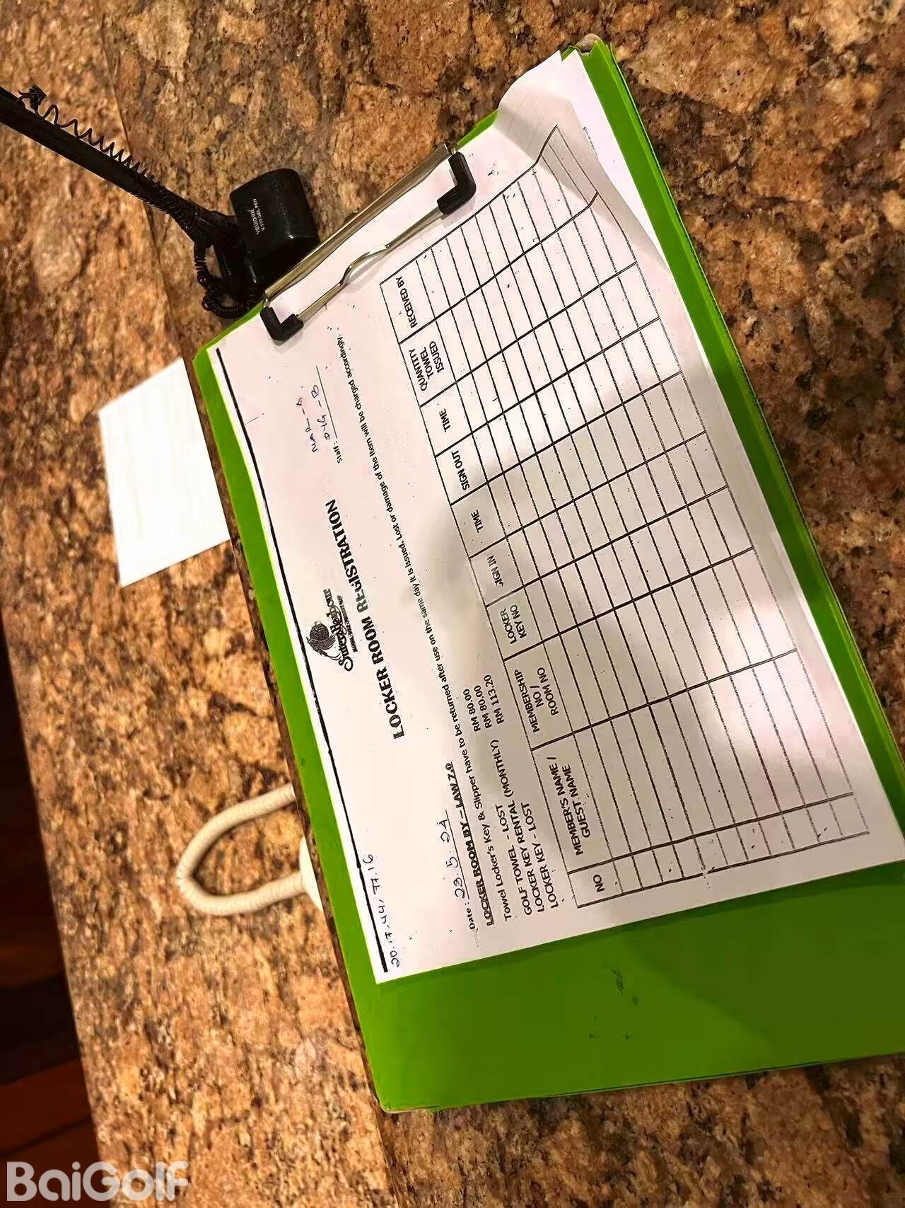 登记柜台:位于高尔夫商店里面