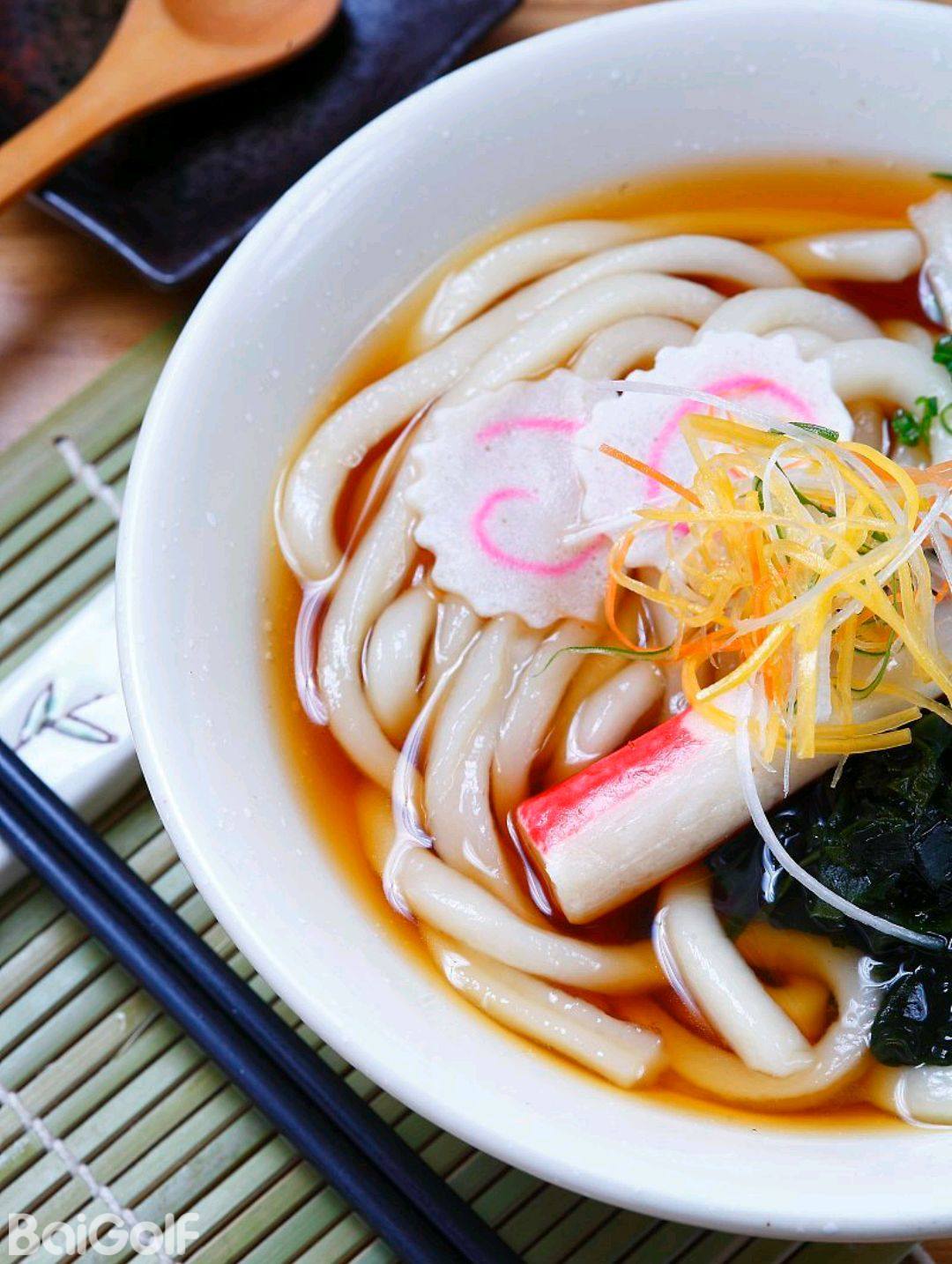 乌冬面:一种以小麦粉为原料制成的面条,它有着与荞麦面相似的食用方式。其中一种流行的吃法是将其与用酱油和砂糖调配而成的酱汁混合,制成一道清爽的凉面。