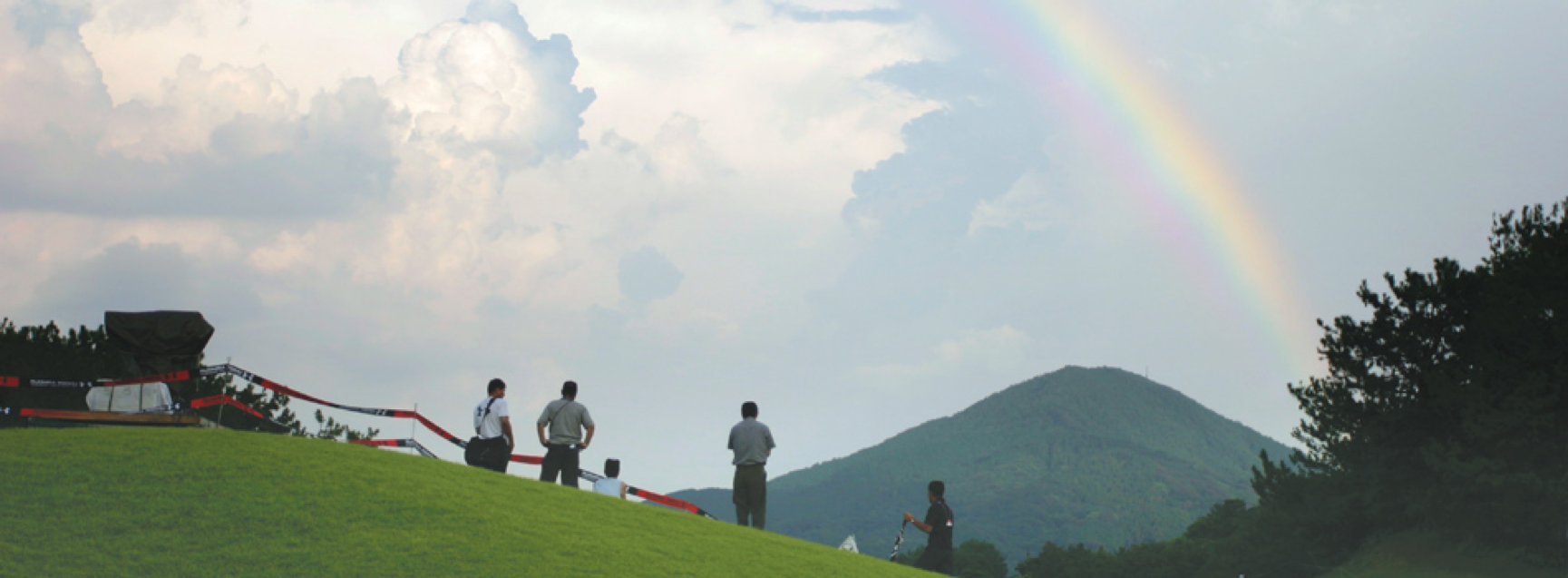 從俱樂部會所的2樓,可以看到順著1洞白色波浪起伏的玄界灘,也可以看到對面的壱岐島、小呂島、鳥帽子島等氣魄十足的全景風光,同時也可以望到與糸島半島相臨近的雄偉山姿。可謂是日本屈指可數的地標性高爾夫球場。後半場可以眺望湛藍的大海和名勝點芥屋的大門。