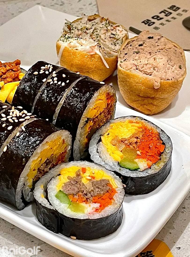 紫菜包饭:紫菜包饭,又称寿司卷,是一种将米饭、蔬菜、肉类等食材搭配调味料,然后用紫菜包裹起来的美食。这种食物便于携带和食用,不需要使用筷子,因此也被称作韩式手抓饭。