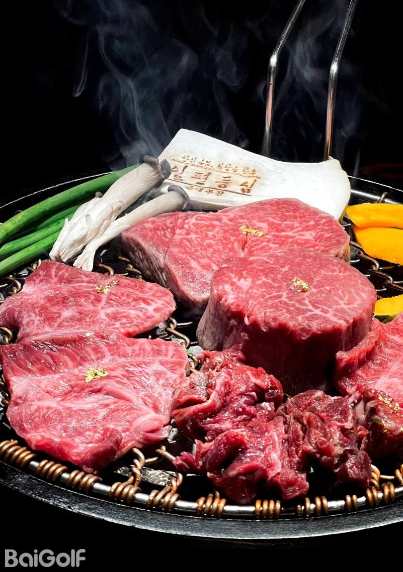 韩式烤肉:精选的猪肉和牛肉薄片,与新鲜蔬菜一同在烤架上精心烤制,肉质鲜嫩多汁。搭配上清脆的生菜和特制的调味酱,这种独特的食用方式带来了别具一格的风味享受。