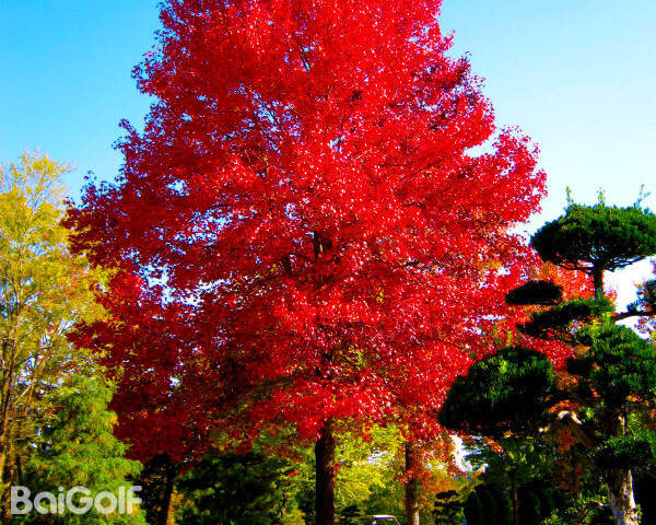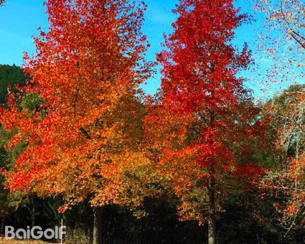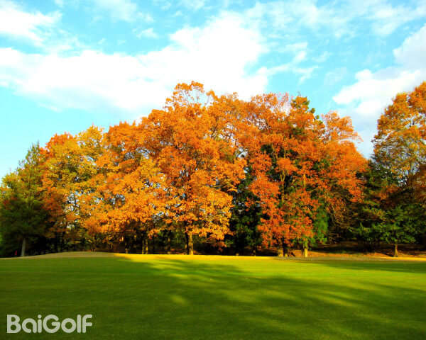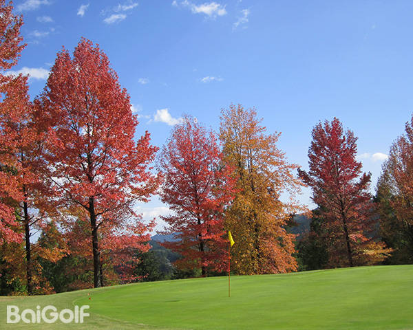 入口道路两旁金黄的银杏树欢迎您的到来,而球场上红色和橙色的西洋枫树则将秋天的高尔夫景色展现得淋漓尽致。
