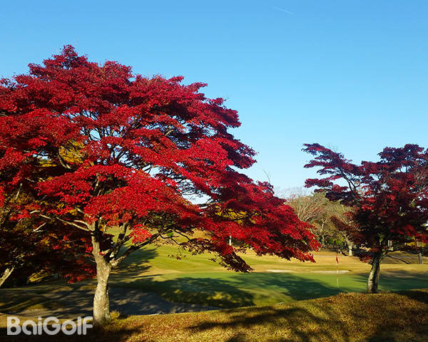 不仅球场上的秋色美不胜收,周围群山中的秋色也是美不胜收,从餐厅就可以欣赏到球场和群山的秋色。 在球场上,8洞、14 洞和 17 洞尤其美丽。特别是 17 洞,银杏树的黄色和枫树的红色形成了美丽的对比。