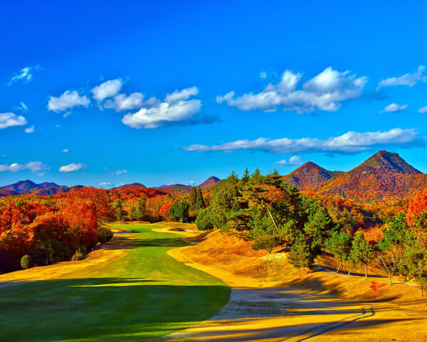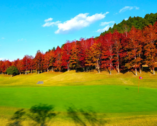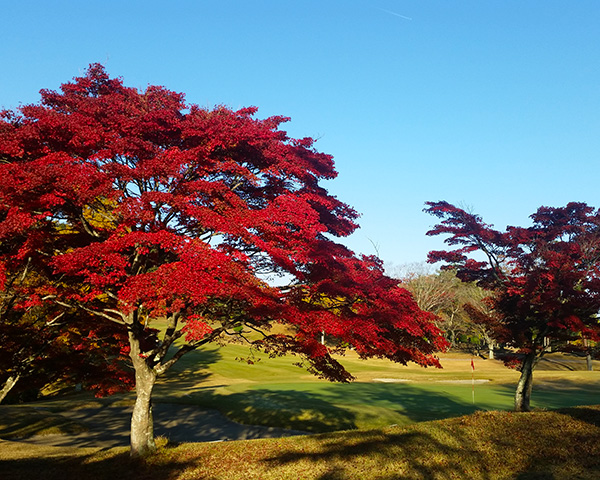 不僅球場上的秋色美不勝收,周圍群山中的秋色也是美不勝收,從餐廳就可以欣賞到球場和群山的秋色。 在球場上,8洞、14 洞和 17 洞尤其美麗。特別是 17 洞,銀杏樹的黃色和楓樹的紅色形成了美麗的對比。