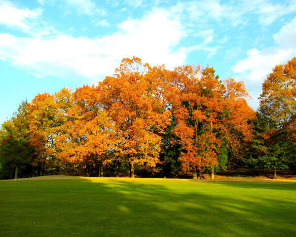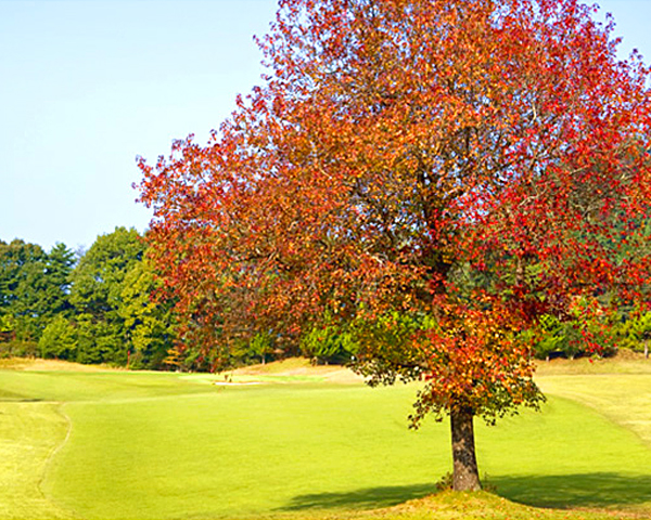 入口道路兩旁金黃的銀杏樹歡迎您的到來,而球場上紅色和橙色的西洋楓樹則將秋天的高爾夫景色展現得淋漓盡致。