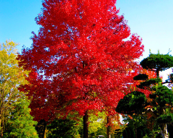 楓樹大小不壹,色彩斑斓。 得益于五仙山的美景,球場的四面八方都是紅葉。
