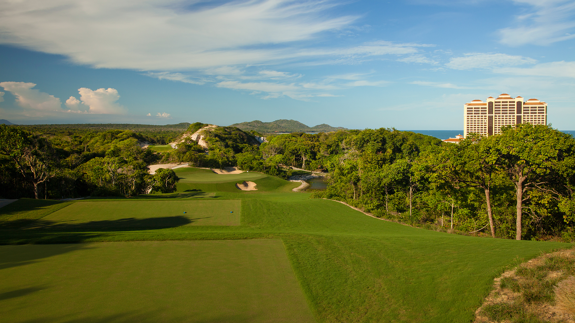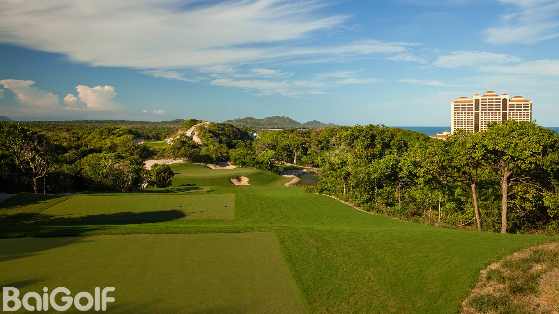 最壮观的景点之一在标志性的第4洞。从这里,球友可以欣赏到360度的壮观景色:球场本身,郁郁葱葱的森林和野生动物,广阔的越南海岸,以及越南第一个综合赌场和高尔夫度假村Grand Ho Tram Strip。